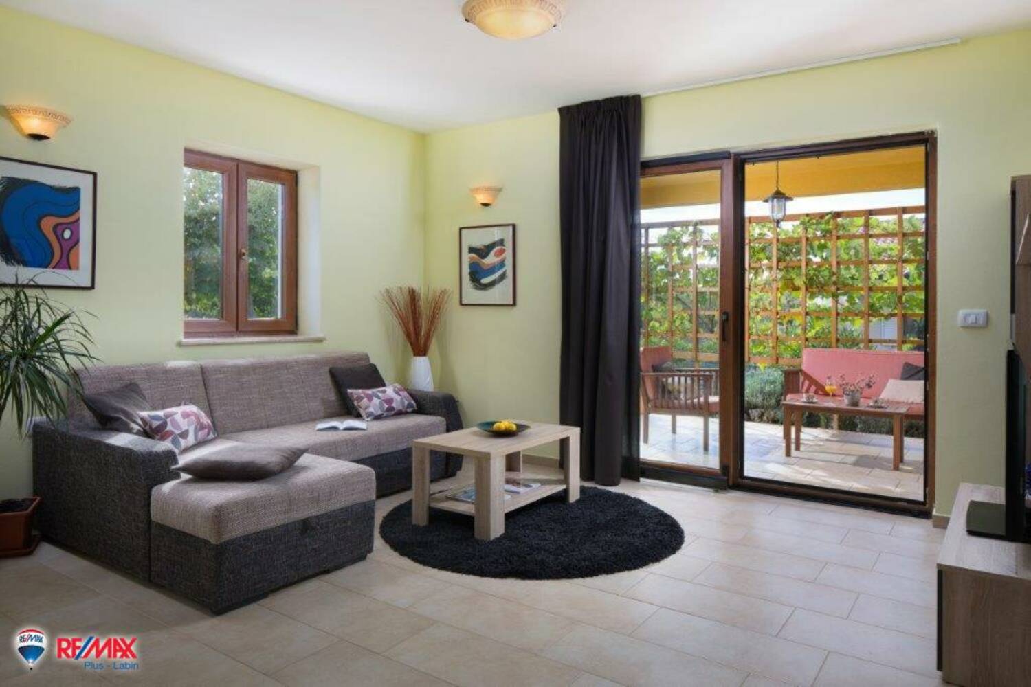 Unutar ograđenog dvorišta nalazi se bazen sa sunčalištem, uređene zelene površine i zasađeno mediteransko bilje, stvarajući ugođaj prave istarske vile.