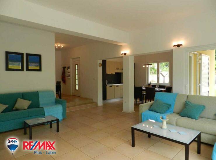Ova lijepa kuća smještena je na atraktivnoj lokaciji, između grada Labina i turističkog središta Rabac, sa prekrasnim pogledom na okolnu prirodu i stari grad Labin.