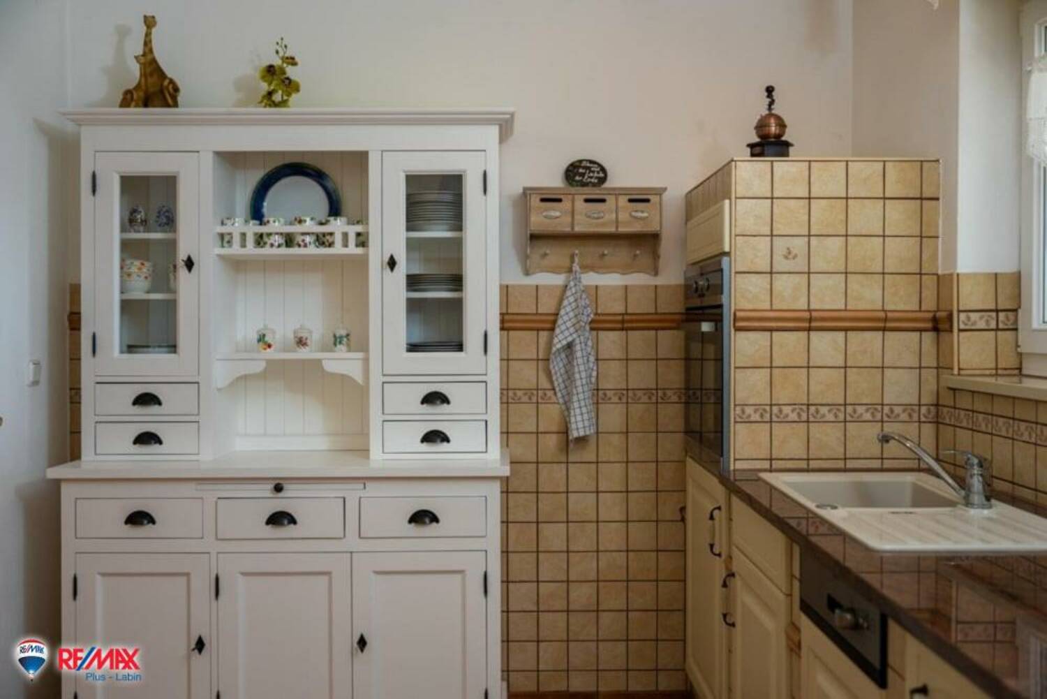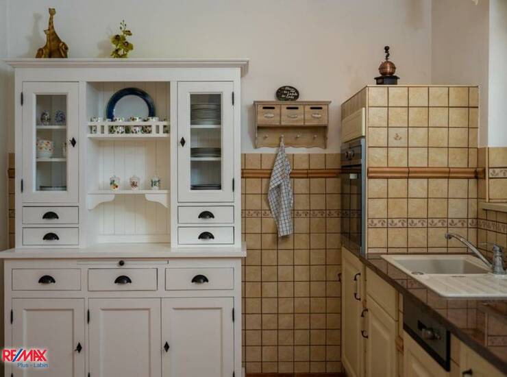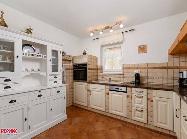 U prizemlju se nalazi moderno uređena kuhinja s blagovaonicom i dnevnim boravkom koji vodi na natkrivenu terasu, manja spavaća soba, kupaonica, ostava i spremište.