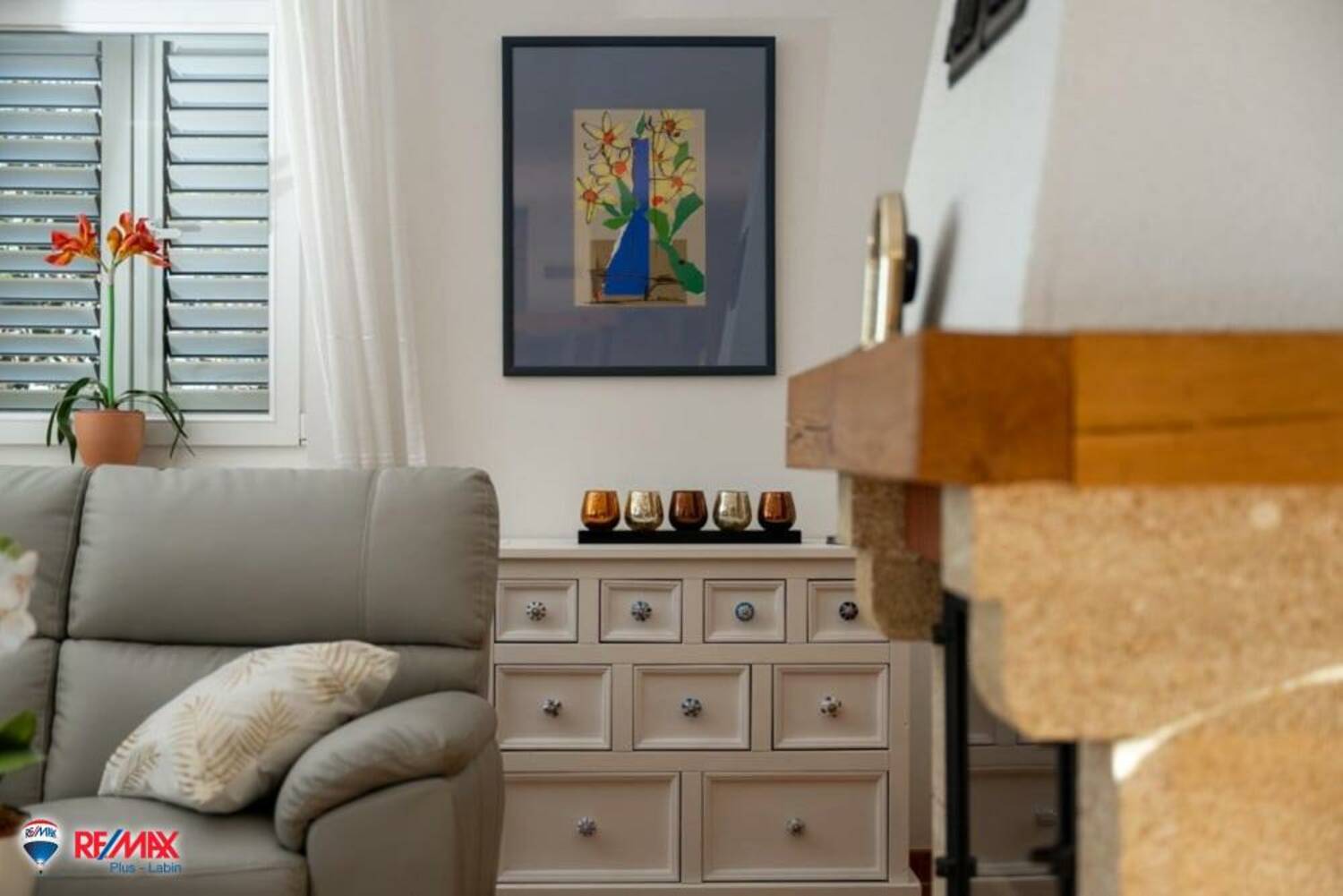 Na mirnoj lokaciji, u slikovitom naselju nadomak Rapca i Labina, nalazi se ova atraktivna kuća s bazenom i predivnim pogledom na more. Smještena je u uređenom susjedstvu obiteljskih kuća i kuća za odmor, gdje se savršeno spajaju spokoj ruralnog ambijenta s blizinom mora i gradskih sadržaja.