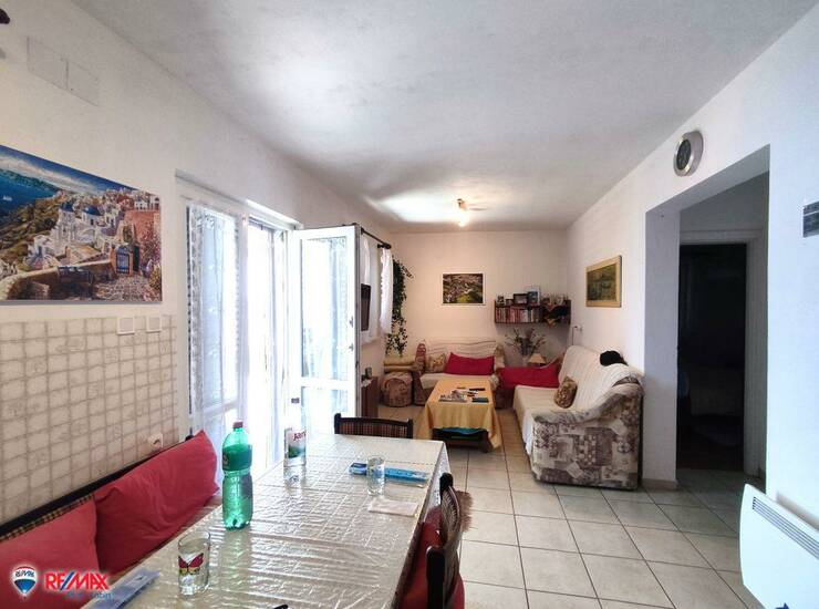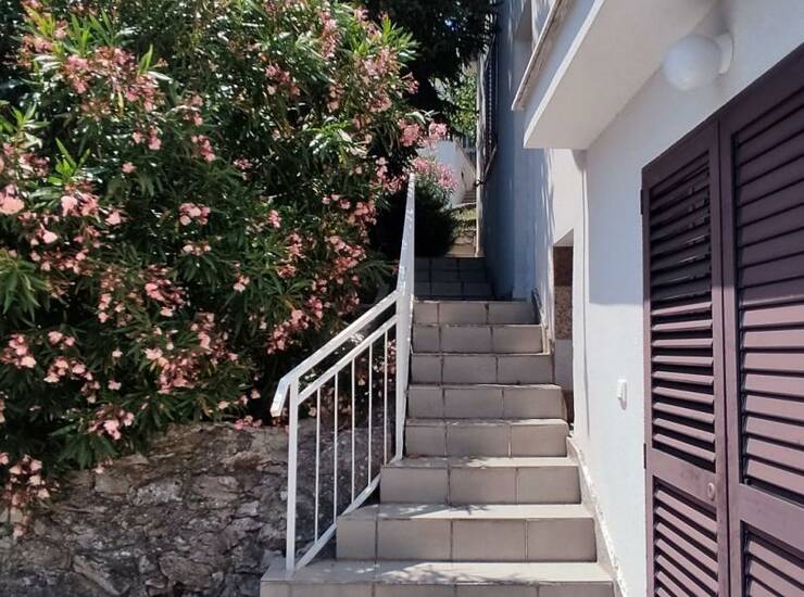U prizemlju se nalazi kuhinja sa blagovaonom i dnevnim boravkom, kupaona i dvije spavaće sobe te prostrana terasa ( 28 m2) idealna za uživanje u pogledu na more.