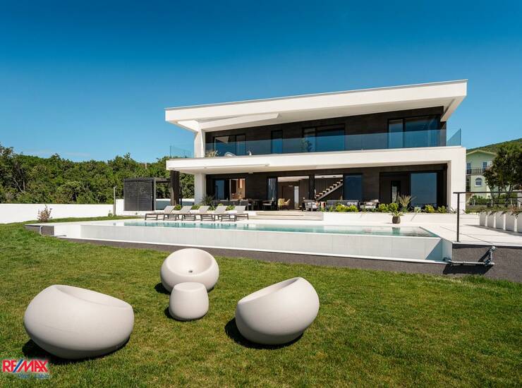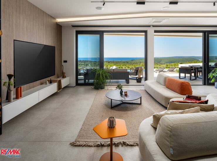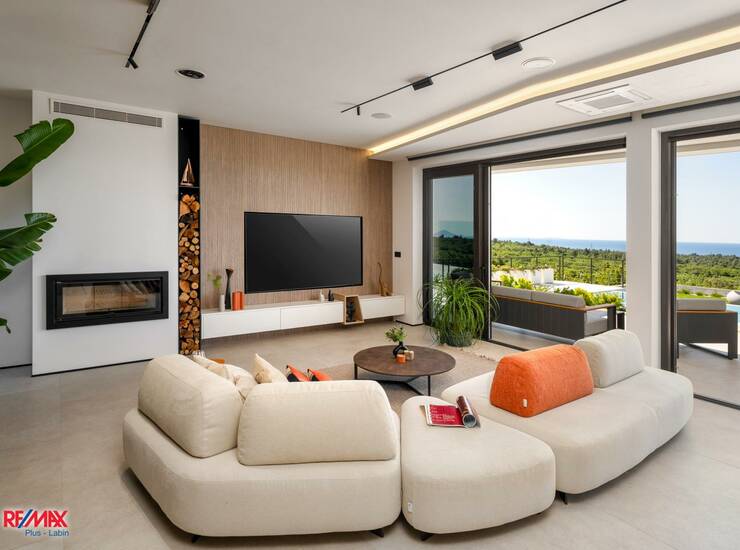 Na mirnoj lokaciji istočne Istre, okružena zelenilom i pogledom koji seže do mora i otoka Cresa, smjestila se ova suvremena vila vrhunske arhitekture i dizajna. Riječ je o jedinstvenoj nekretnini koja spaja sofisticiran stil, maksimalnu udobnost i potpunu privatnost, stvarajući idealan prostor za opuštanje i uživanje u mediteranskom načinu života.