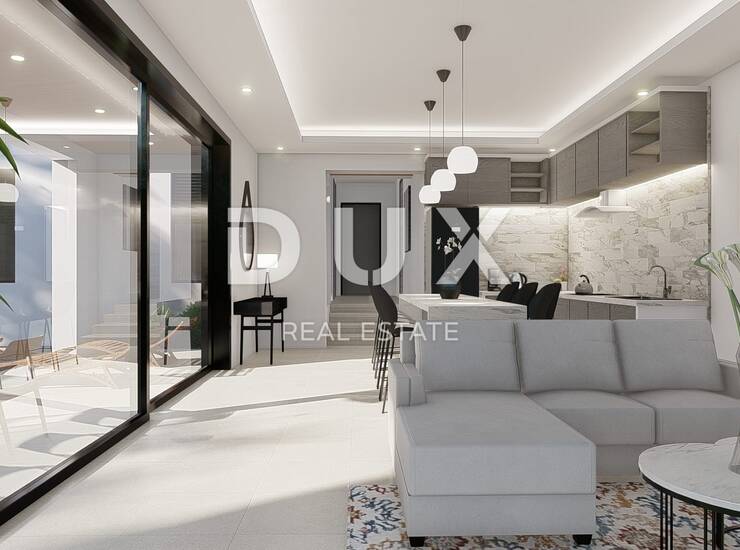 Središnji dio vile čini open space dnevni boravak s kuhinjom i blagovaonicom, idealan za druženje, opuštanje i uživanje u prirodnom svjetlu koje ispunjava prostor. Iz dnevnog dijela izlazi se na veliku natkrivenu terasu, savršenu za jutarnju kavu, večere pod zvijezdama ili ljetna okupljanja.