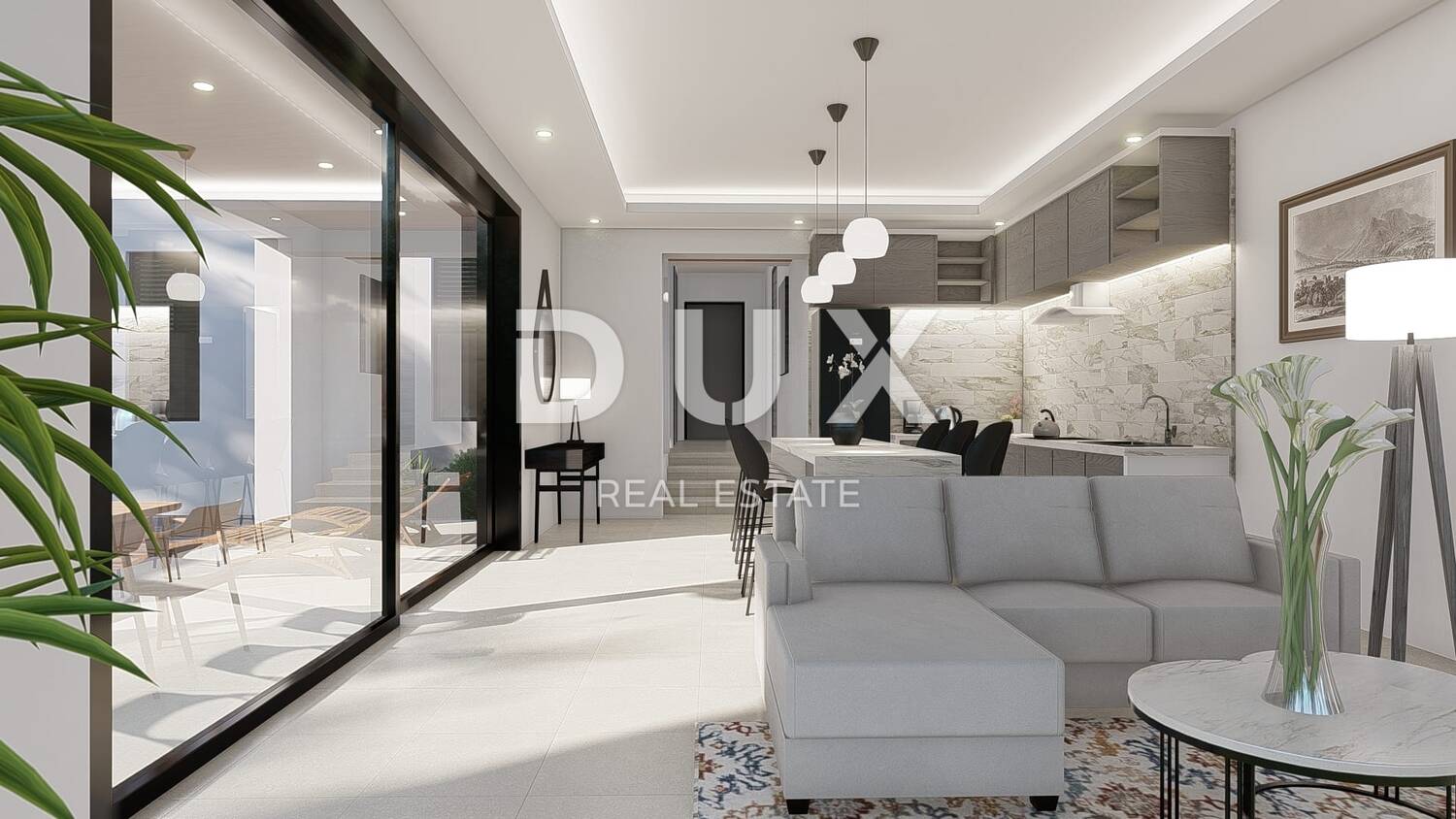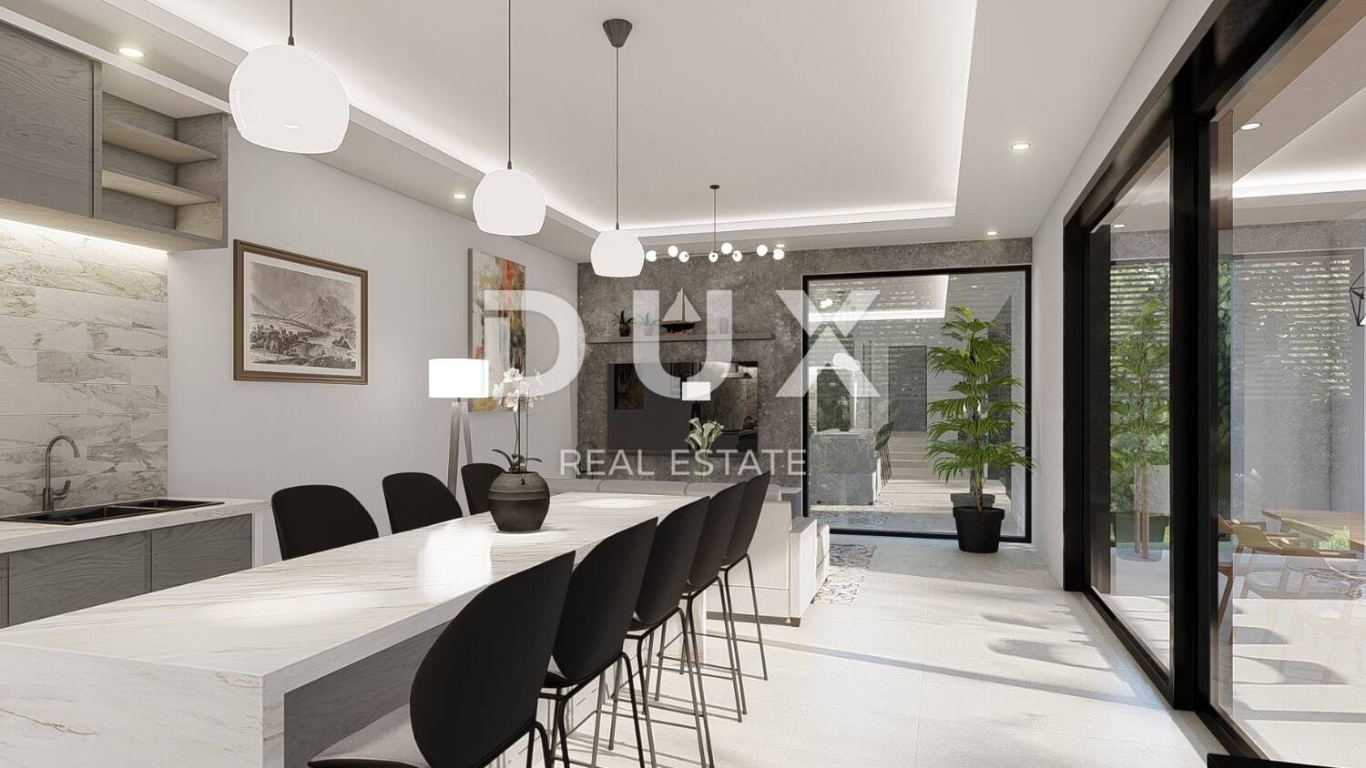 Središnji dio vile čini open space dnevni boravak s kuhinjom i blagovaonicom, idealan za druženje, opuštanje i uživanje u prirodnom svjetlu koje ispunjava prostor. Iz dnevnog dijela izlazi se na veliku natkrivenu terasu, savršenu za jutarnju kavu, večere pod zvijezdama ili ljetna okupljanja.