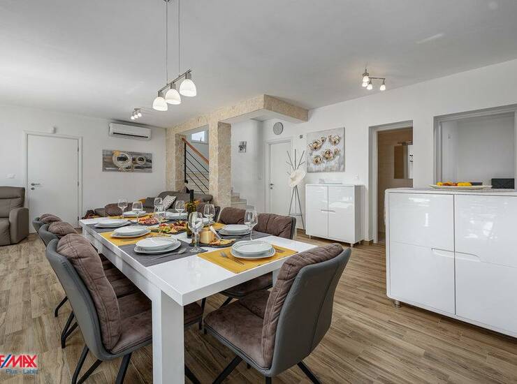 Prizemlje se sastoji od kuhinje s blagovaonom i dnevnim boravkom, dvije spavaće sobe, dvije kupaonice, wc-a i spremišta. Na katu su smještene još dvije spavaće sobe, dvije kupaonice i vanjska terasa.