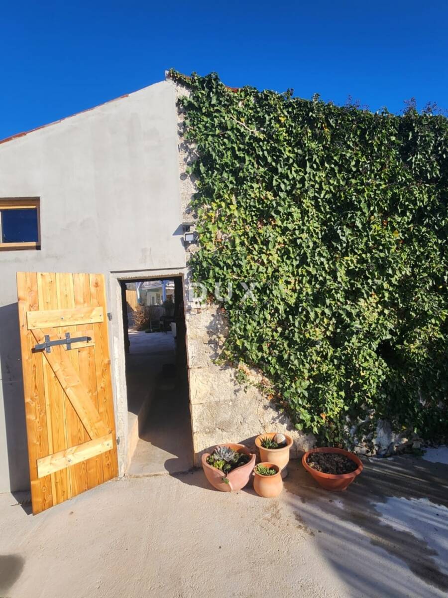 Na parceli površine 413 m2, osim kuće, nalaze se terasa s cisternom, pomoćni objekt i parkirno mjesto.