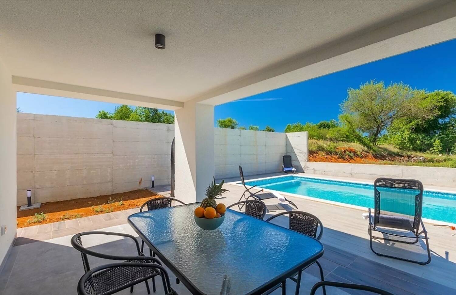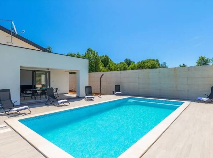 Na ograđenoj i uređenoj okućnici nalazi se bazen površine 32 m² sa sunčalištem i parkirna mjesta.