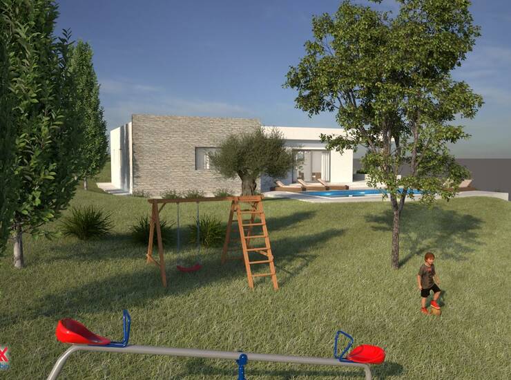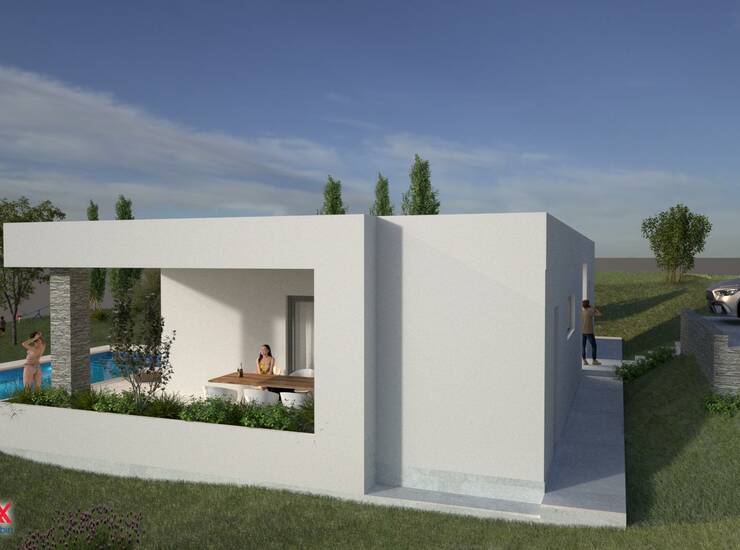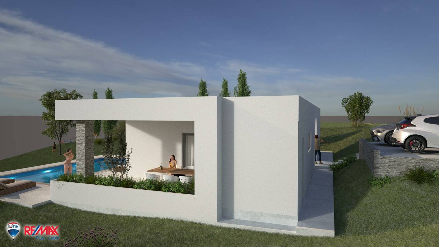 Moderna prizemnica s bazenom u fazi izgradnje smještena je u mirnom naselju, 4.5 kilometra od grada Labina.