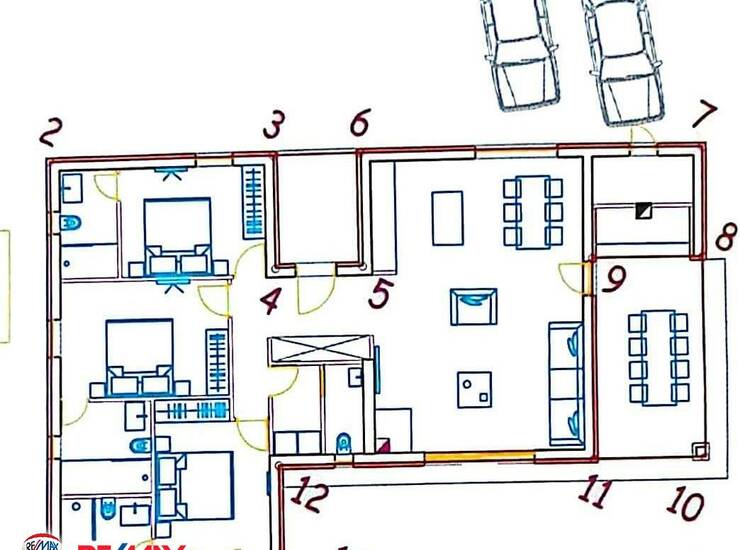Sastoji se od dnevnog dijela (43,50 m2), tri spavaće sobe, svaka sa svojom kupaonom, wc, praona, te vanjsko spremište.