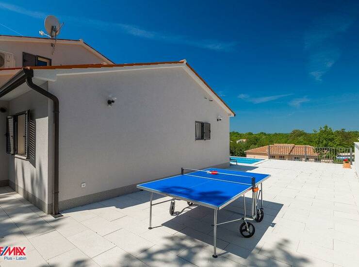 Na prodaju je prekrasna vila s bazenom, smještena na mirnoj lokaciji, svega nekoliko minuta vožnje od grada Labina i popularnog primorskog mjesta Rabac. Vila se prostire na dvije etaže (prizemlje i kat), ukupne stambene površine 249 m².