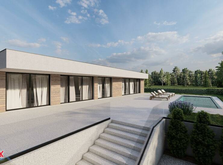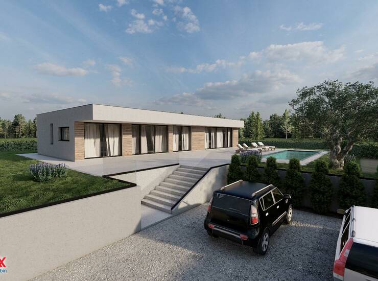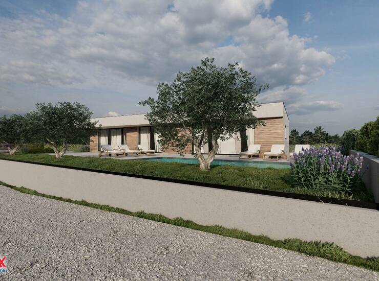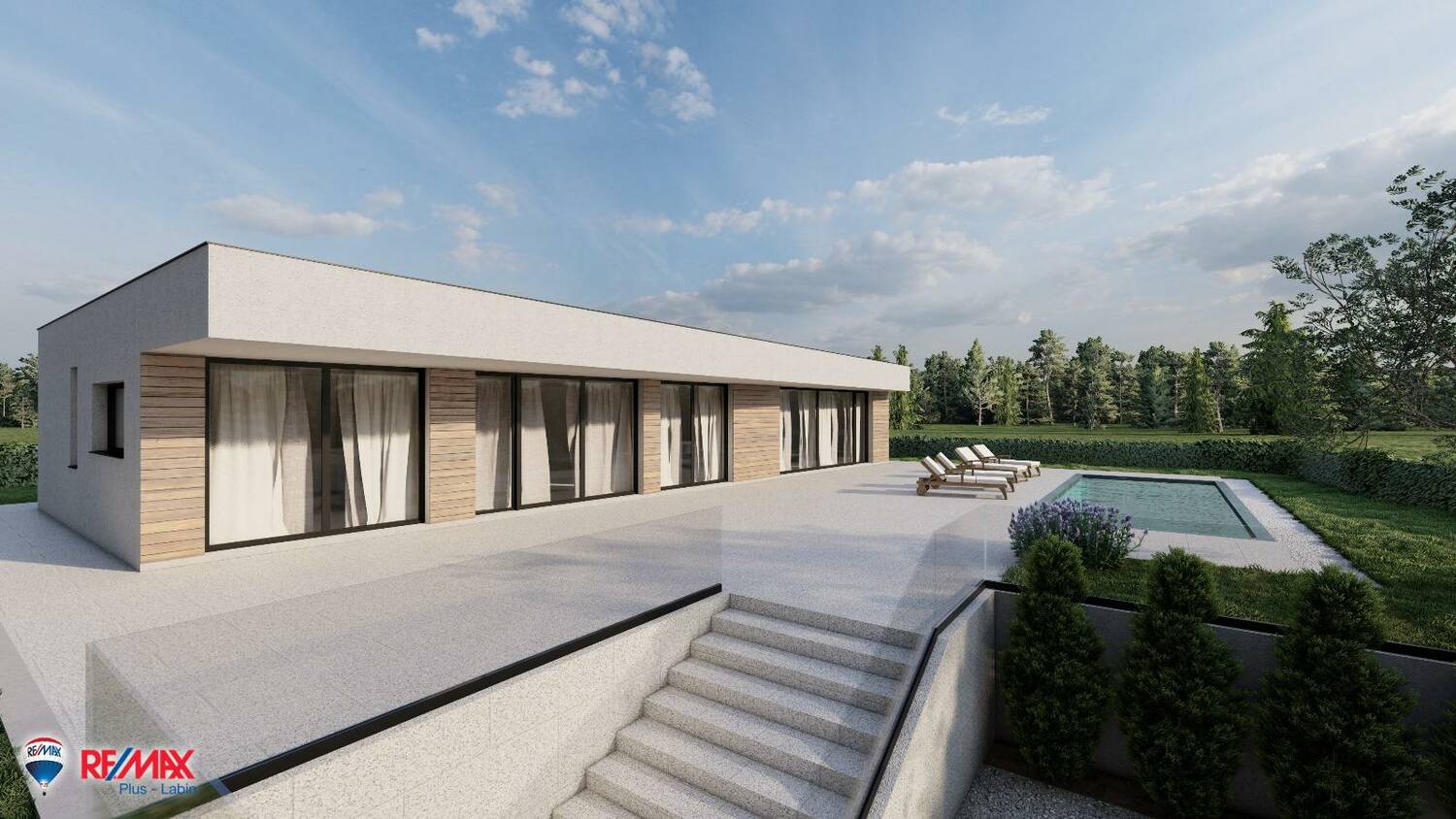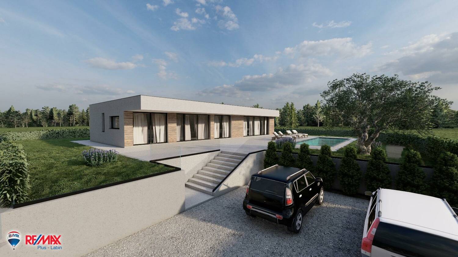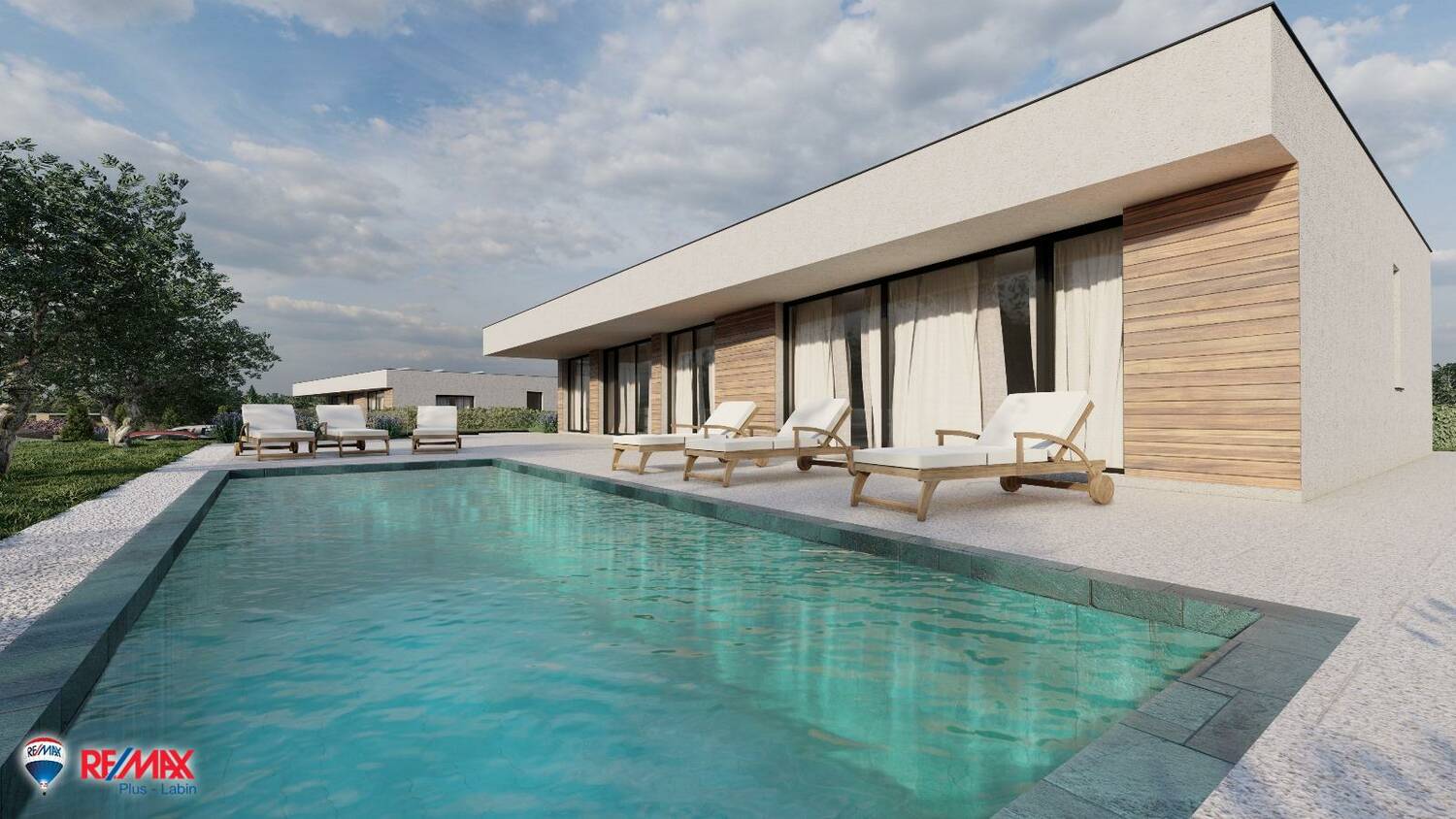 Labin, okolica, novoizgrađena prizemnica s bazenom