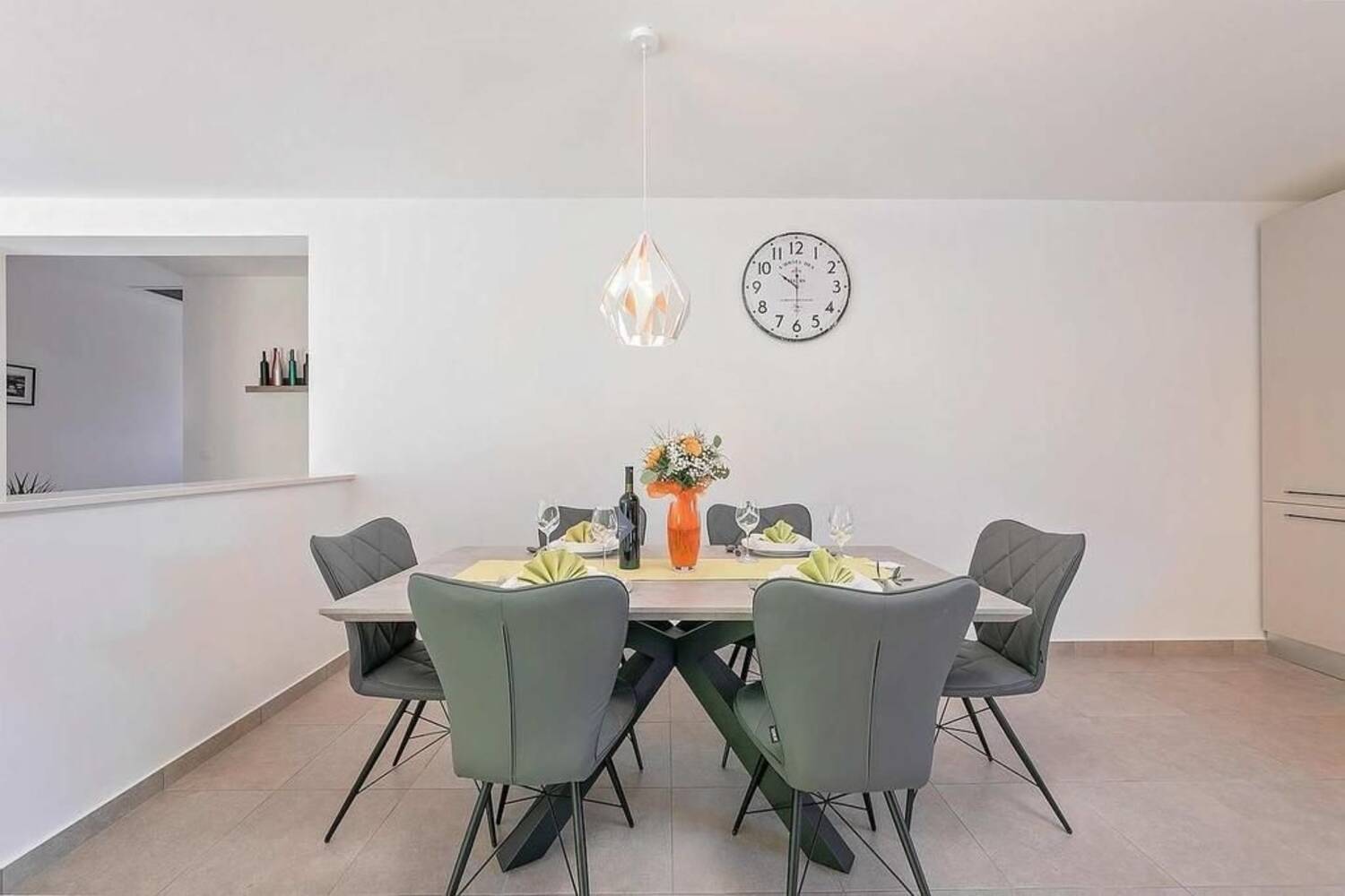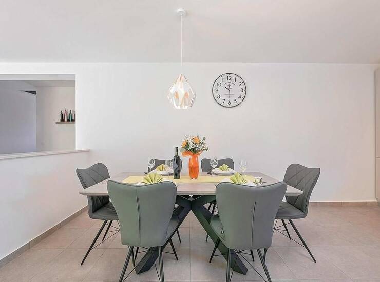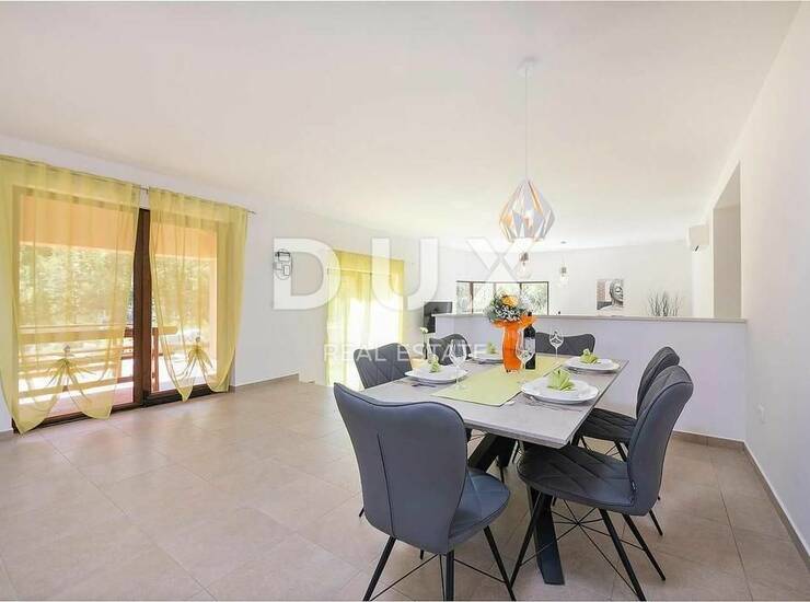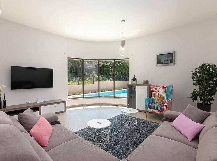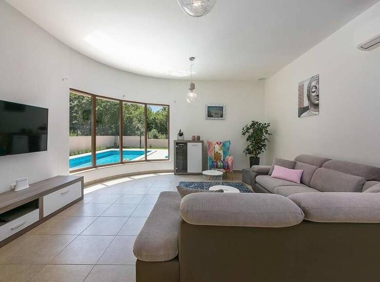 Ova lijepa i moderno opremljena villa smjestila se na zemljištu od 671 m2. Sastoji od kuhinje s blagovaonicom i izlazom na terasu, prostranog dnevnog boravka s nesmetanim pna terasu s bazenom. Uz klimatizaciju objekt je opremljen i podnim grijanjem. Na uređenoj okućnici smjestio se bazen od 32 m² , dječje igralište te natkrivena terasa s roštiljem. Dva parkirna mjesta su u garaži objekta, uz još 2 dodatna parkirna mjesta u sklopu uređene okućnice
