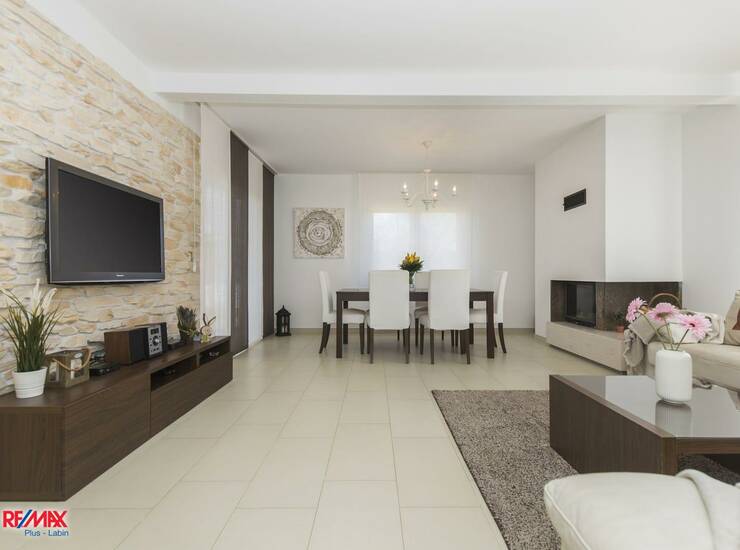 Nekretnina se sastoji od kuhinje s blagovaonicom, prostranog dnevnog boravka, tri spavaće sobe i dvije kupaonice, pružajući funkcionalan i udoban raspored za obiteljski život ili odmor. Iz dnevnog prostora izlazi se na natkrivenu terasu, idealnu za boravak na otvorenom.