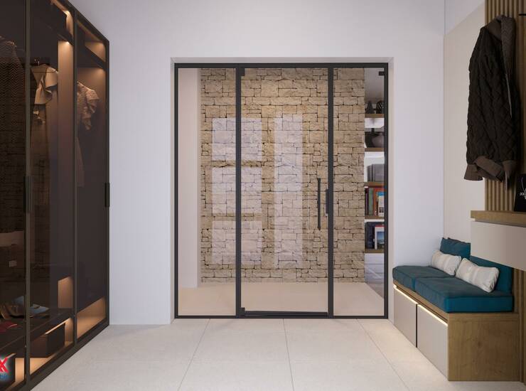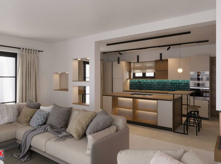 Prizemlje je predviđa kuhinju, blagovaonu i dnevni boravak sa ostakljenim kaminom u konceptu otvorenog prostora, jedna spavaća soba s vlastitom kupaonom te dodatna gostinjska kupaona.
