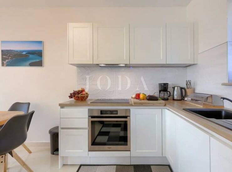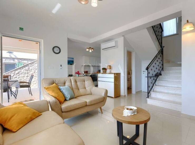 Prizemlje:Ugodan dnevni boravak sa kabelsko/satelitskom televizijom,kompletno opremljena kuhinja i blagovaona,wc,natkrivena terasa.