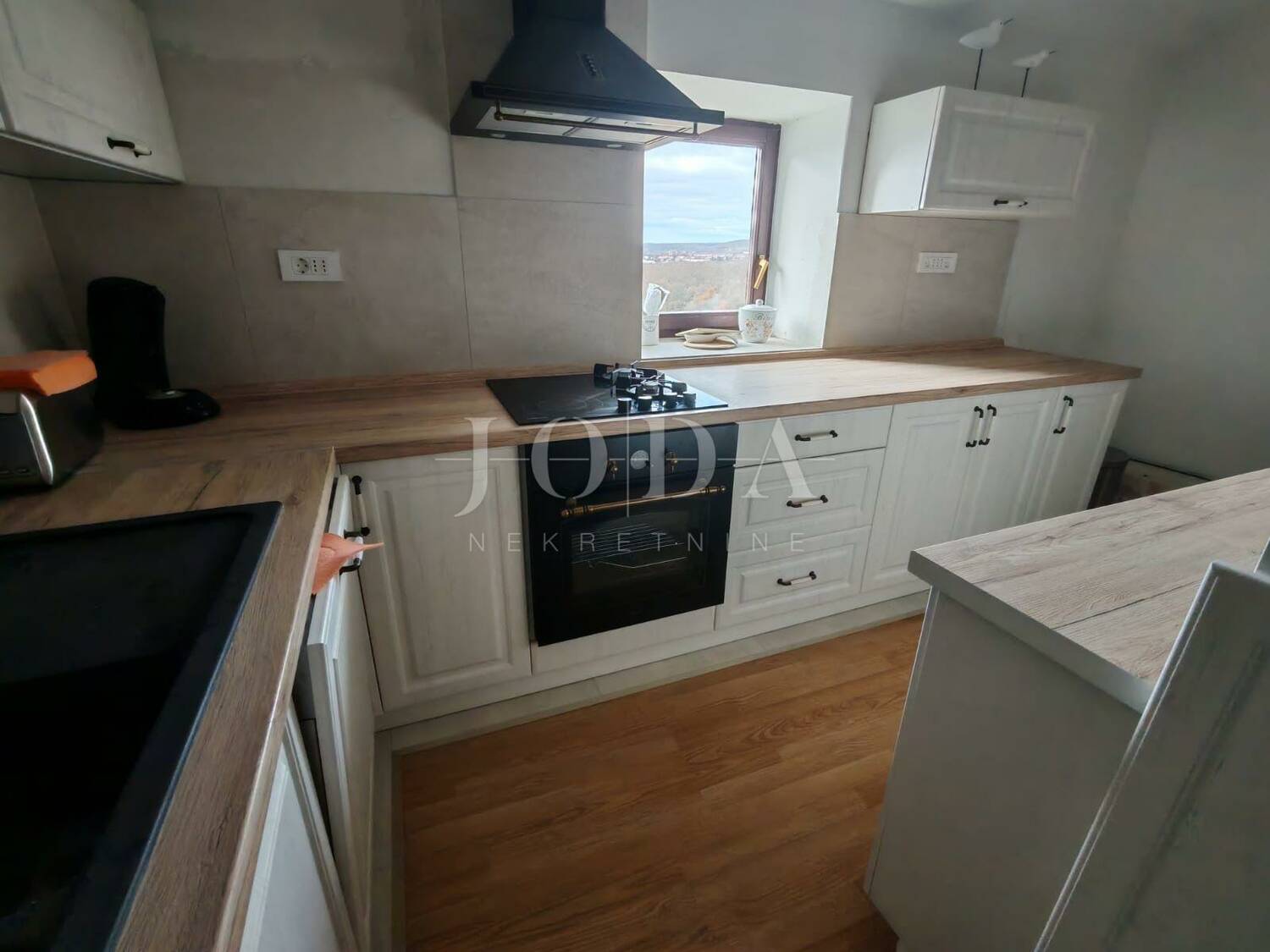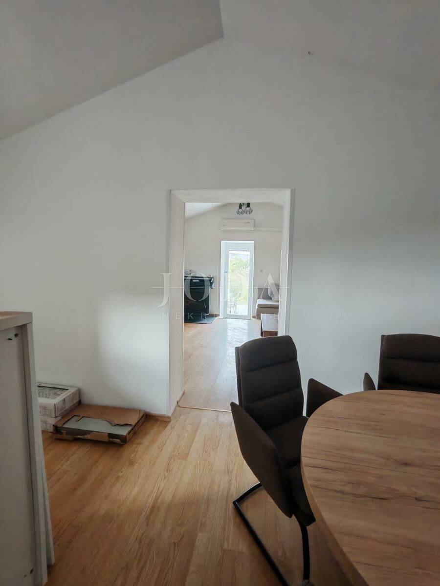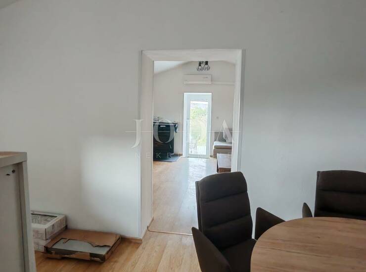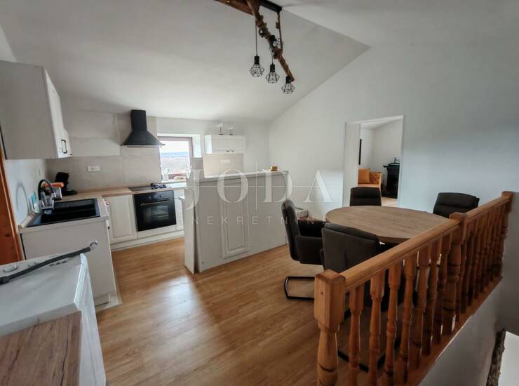 Na katu je prostrani i svijetli dnevni dio, kuhinja povezana sa blagovaonom, dnevni boravak, kupaona, te velika terasa.