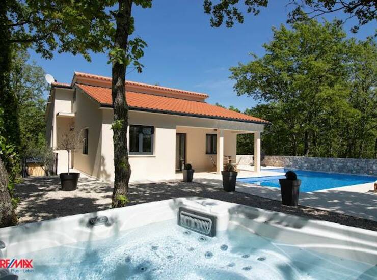Atraktivna novoizgrađena vila na osami, okružena šumom i zelenilom smještena na parceli lijepe površine od 1300 m2.