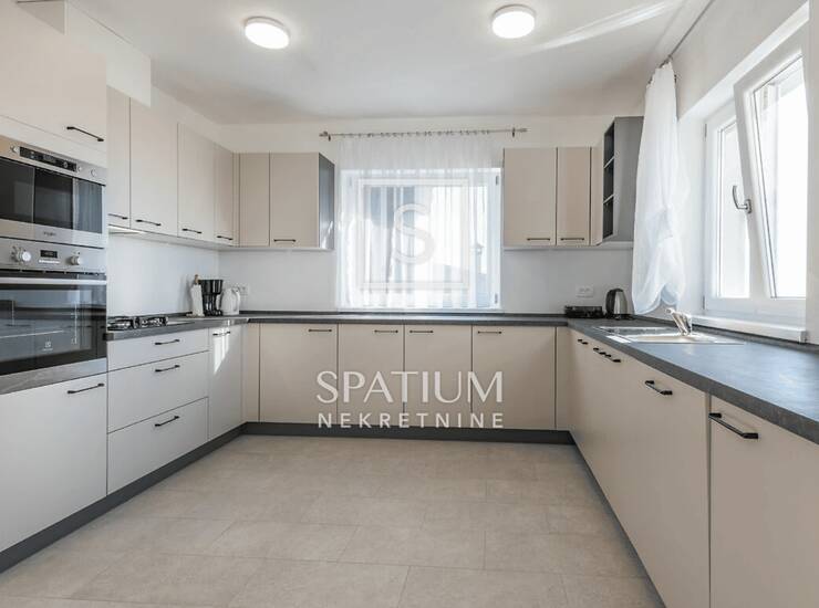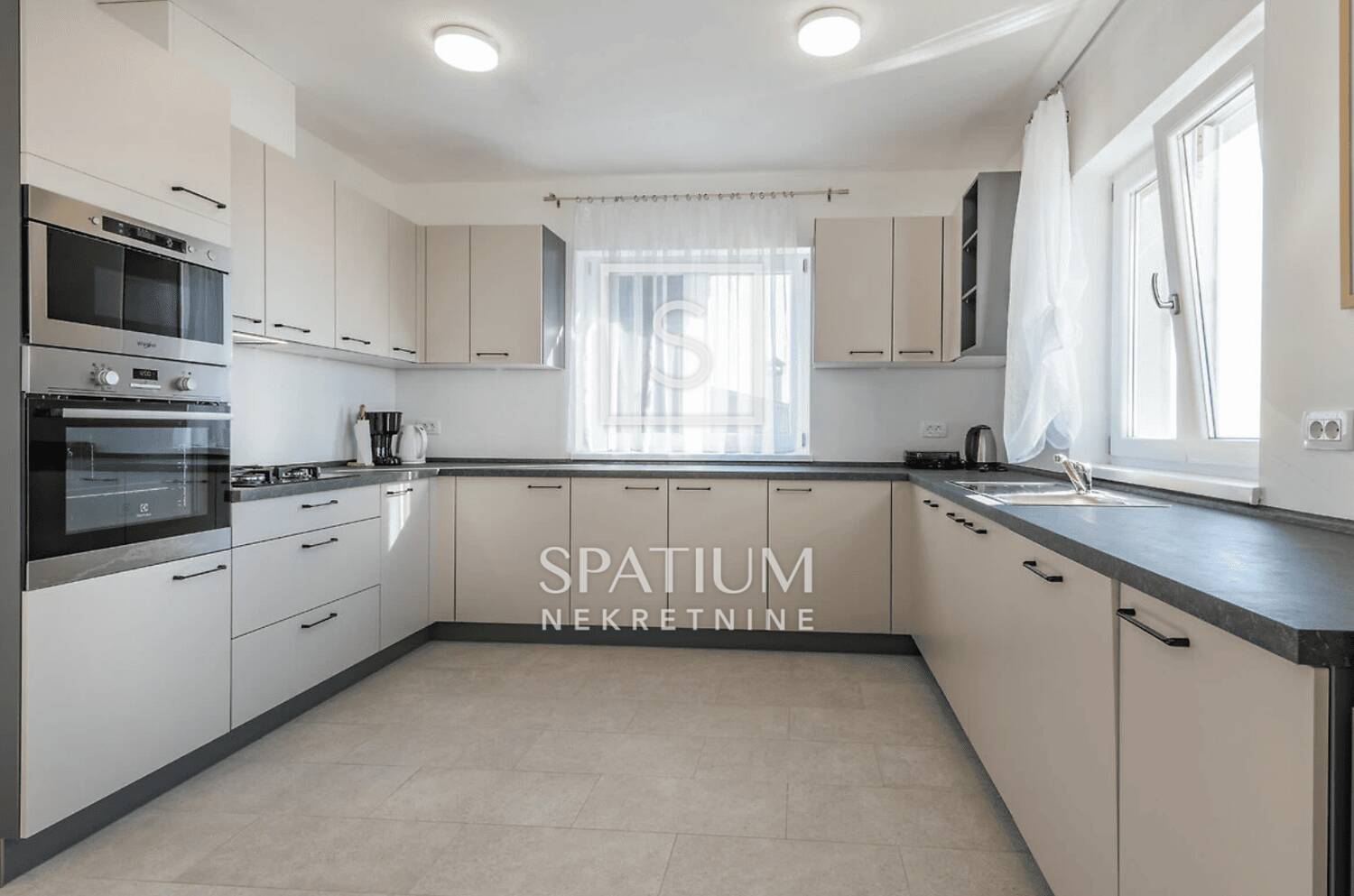 LABIN, u ponudu smo dobili atraktivnu kuću ukupne stambene površine 164 m². Kuća je smještena na velikoj parceli od 1391 m², s dva odvojena stana na dvije etaže, svaki sa zasebnim ulazom. Svaki stan nudi po dvije prostrane spavaće sobe, dvije moderno uređene kupaonice te otvoreni koncept dnevnog boravka s kuhinjom i blagovaonicom. Kuća je klimatizirana – svaki prostor ima vlastiti klima uređaj, a dodatna prednost je dimnjak koji omogućuje grijanje na kruta goriva, čineći je pogodnom za cjelogodišnje stanovanje. Na uređenoj okućnici nalazi se keramikom obložen bazen površine 47 m², a postoji mogućnost izgradnje dodatnog bazena, što znatno povećava turistički potencijal. Kuća se već uspješno koristi za turistički najam, što je čini odličnom investicijskom prilikom.