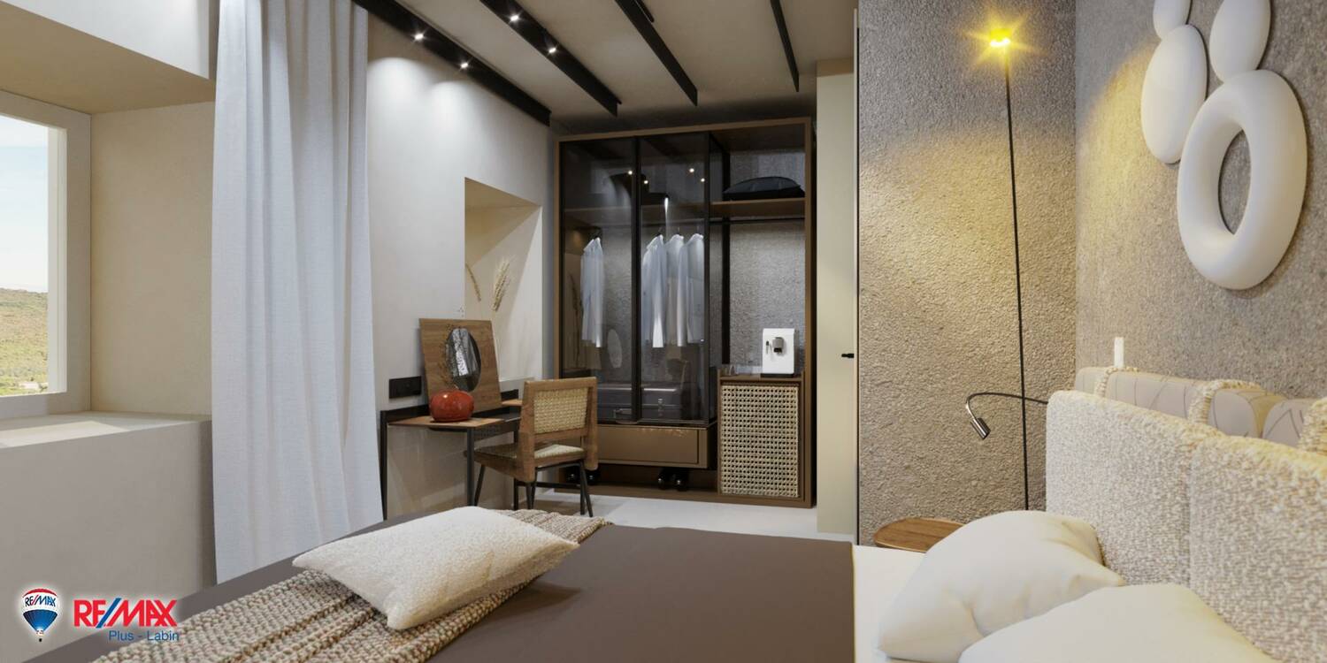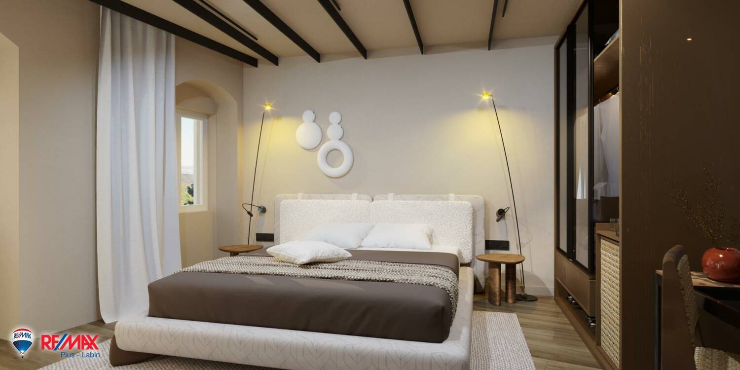 Ova jedinstvena prilika uključuje kuću s već izrađenim projektom i pravomoćnom građevinskom dozvolom za izgradnju modernog hotela s 8 luksuznih soba.