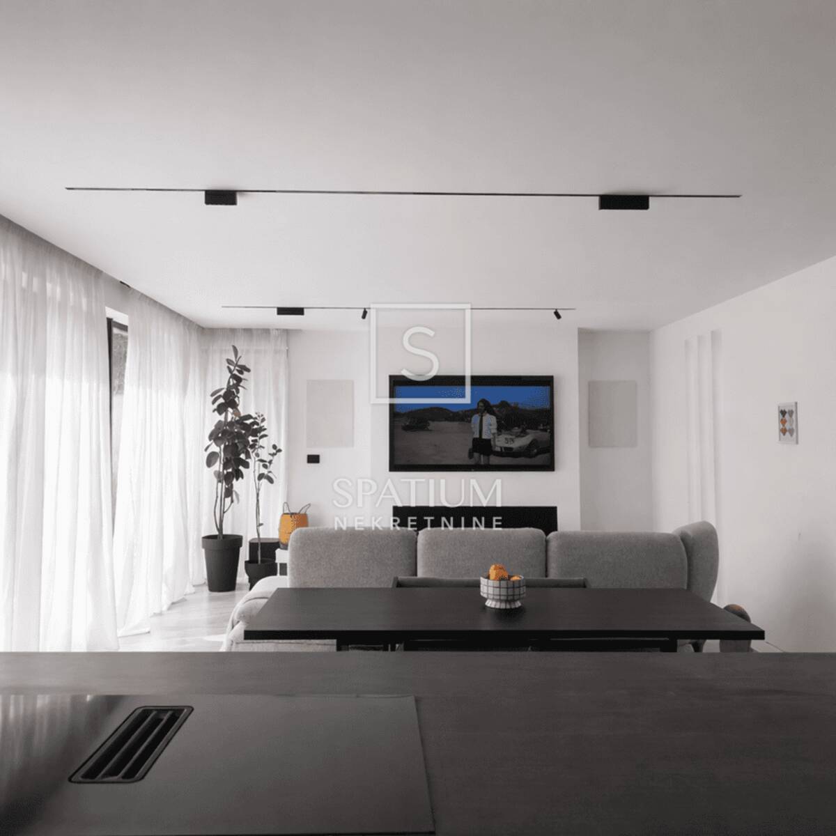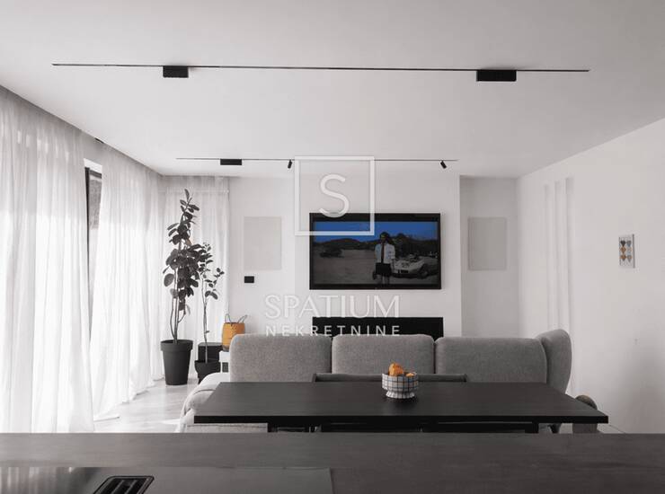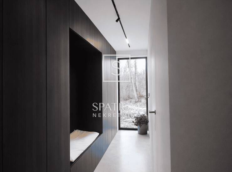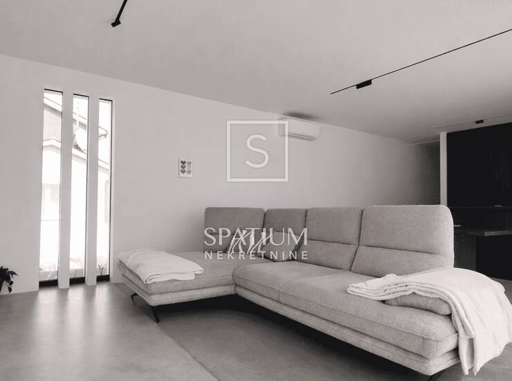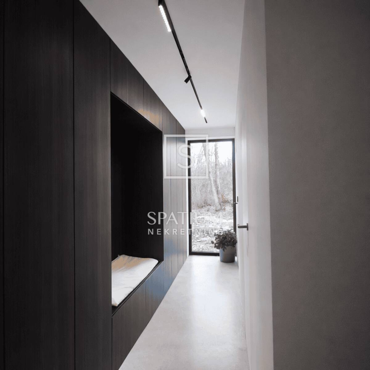 LABIN, u ponudi imamo modernu prizemnicu ukupne površine 143 m2, koja se ističe funkcionalnim rasporedom i visokom kvalitetom gradnje. Kuća se sastoji od prostranog otvorenog prostora koji objedinjuje kuhinju, blagovaonicu i dnevni boravak, master spavaća soba s walk-in garderobom, dvije dodatne spavaće sobe, dvije moderno uređene kupaonice te praktičan utility room. Opremljena je namještajem po mjeri, podnim grijanjem putem dizalice topline, dvostrukom toplinskom izolacijom i dvjema klima jedinicama, što osigurava visoku razinu komfora tijekom cijele godine. Kuća posjeduje A+ energetski certifikat. Kuća je smještena prostranoj okućnici površine 1073 m2, koja budućem vlasniku pruža mogućnost uređenja prema vlastitim željama.