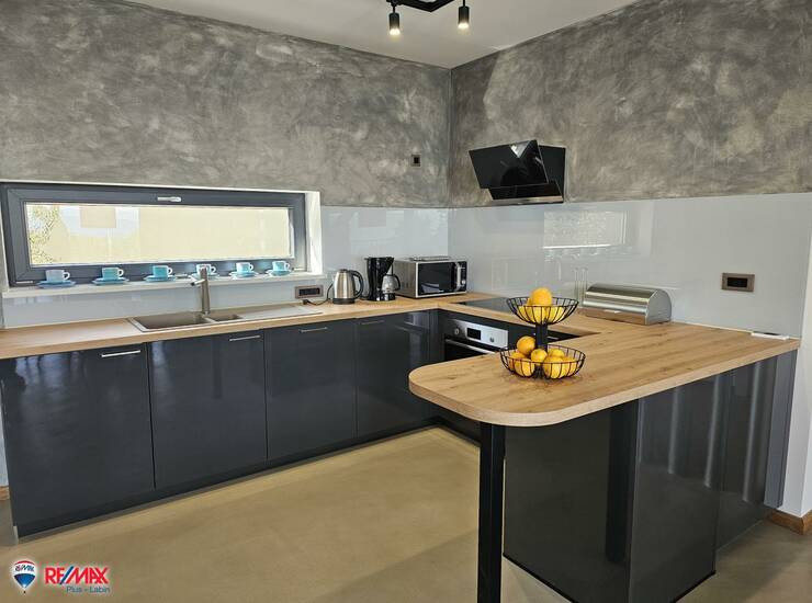 Moderna prizemnica izgrađena u malom mirnom mjestu blizu Labina na parceli površine 1100 m2.