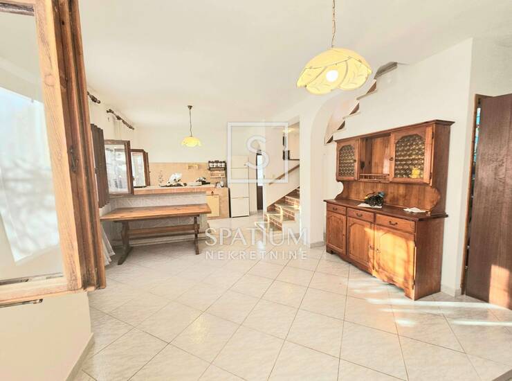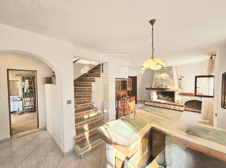 LABIN, u ponudu smo dobili kuću ukupne stambene površine od 210 m2 te uz kuću se nalaze još 2 pomoćne zgrade jedna od 28 m2 a druga od 9m2. Prizemlje se sastoji od: garaže, dnevnog boravka s blagovaonom i kuhinjom, kupaone i ostave. Na prvom katu imamo: kupaonu, 5 spavaćih soba od toga 3 spavaće imaju izlaz na terasu i još jednu kuhinju s blagovaonom. Dvorište je ukupne kvadrature 848 m2 s dvije ulazne kapije za automobile i 4 parking mjesta. U cijenu su uključena i dva poljoprivredna zemljišta od 1569 m2 i 504 m2 koja se nalaze jedno pored drugog te su udaljena 500 m zračne linije od kuće.