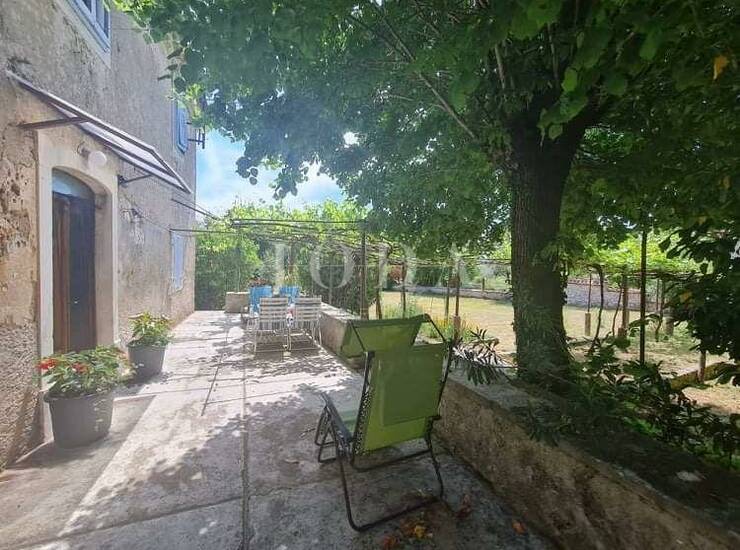 Dvorište je ograđeno kamenim zidom ( dio zida je iz doba gradnje kuće ).