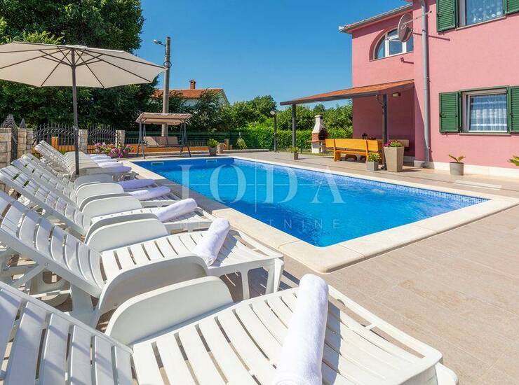 U mirnom naselju, svega par kilometara od centra Labina i desetak minuta od turističkog središta Rapca, nalazi se ova kuća sa bazenom.