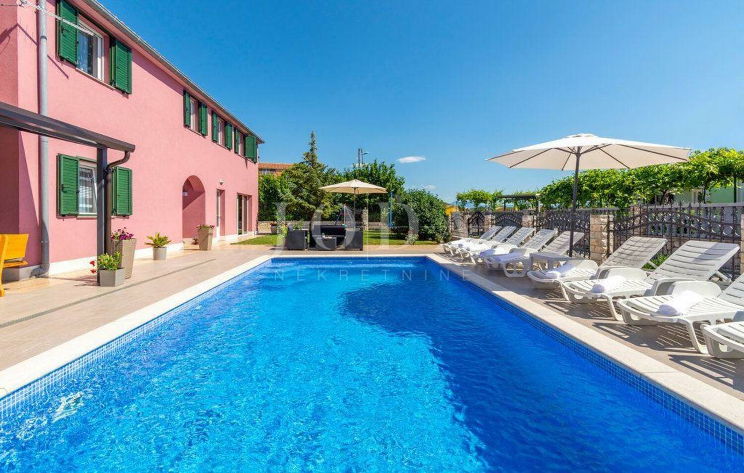 Na uređenoj okućnici nalazi se bazen sa sunčalištem, parking i dječje igralište.