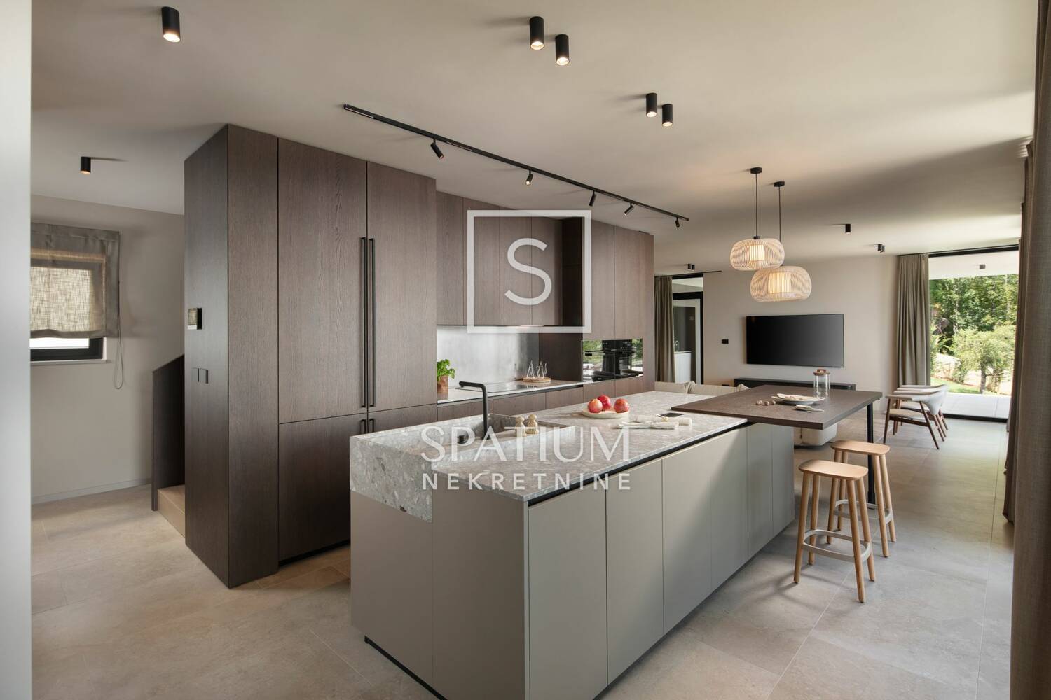 LABIN - OKOLICA, u ponudi imamo u mirnom i diskretnom okruženju u neposrednoj blizini Labina smještena je ova suvremena vila vrhunske kvalitete, namijenjena kupcima koji traže spoj elegancije, komfora i mediteranskog načina života. Nekretnina se nalazi na prostranoj parceli od 1.281 m² te nudi otvoren pogled na more, visoku razinu privatnosti i pažljivo osmišljenu arhitekturu.
