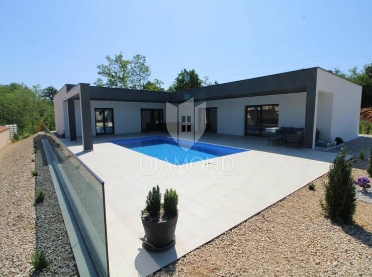 Labin, okolica, novoizgrađena prizemnica s bazenom