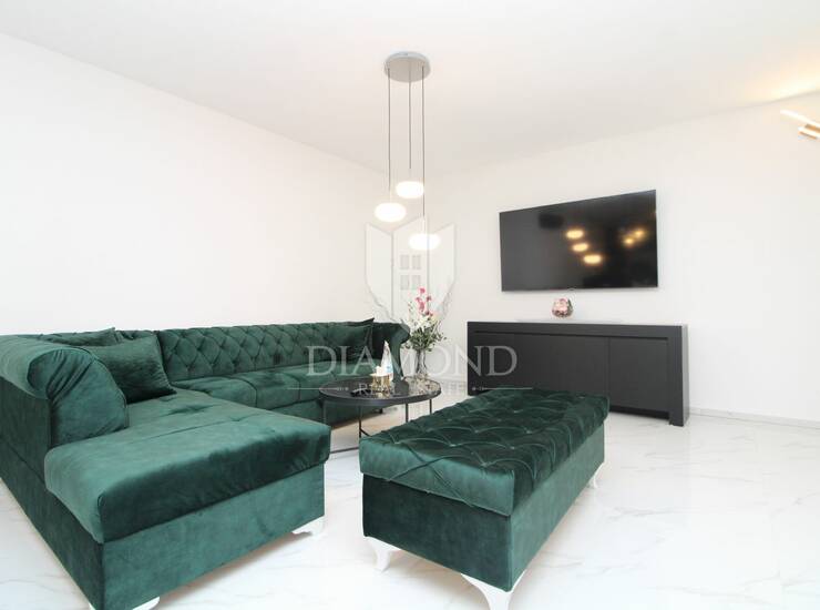 Prostrana okućnica osigurava komociju - dovoljno zelenih površina, parking za dva automobila a centar pozornosti svakako zauzima grijani bazen sa slanom vodom veličine 32 m2.