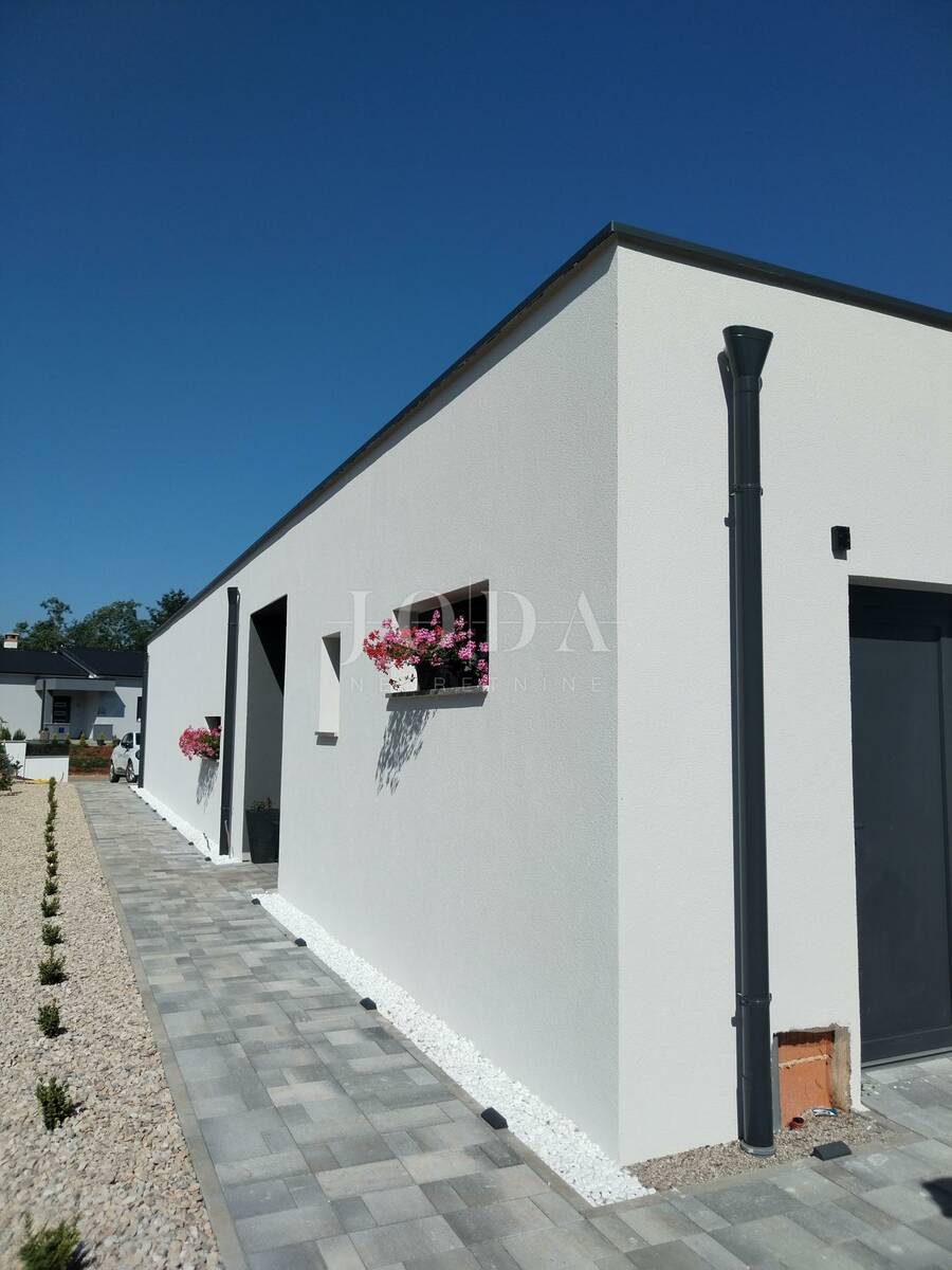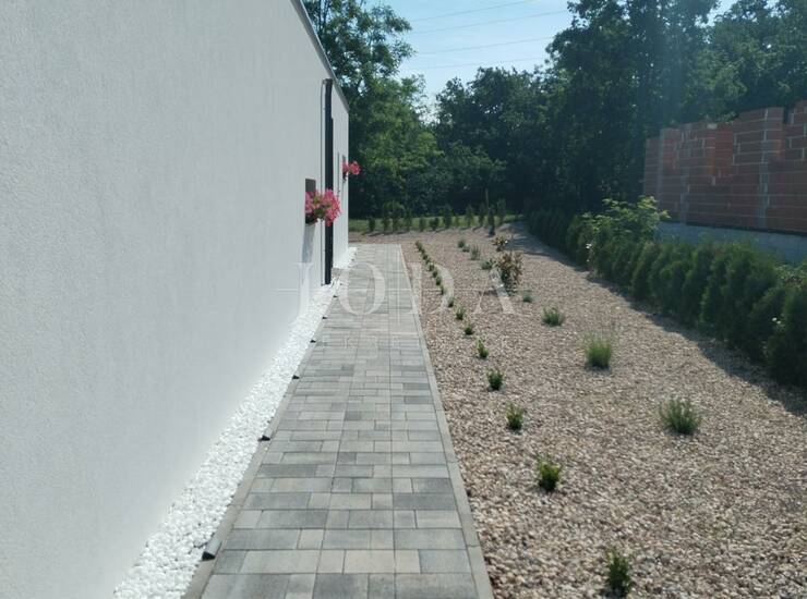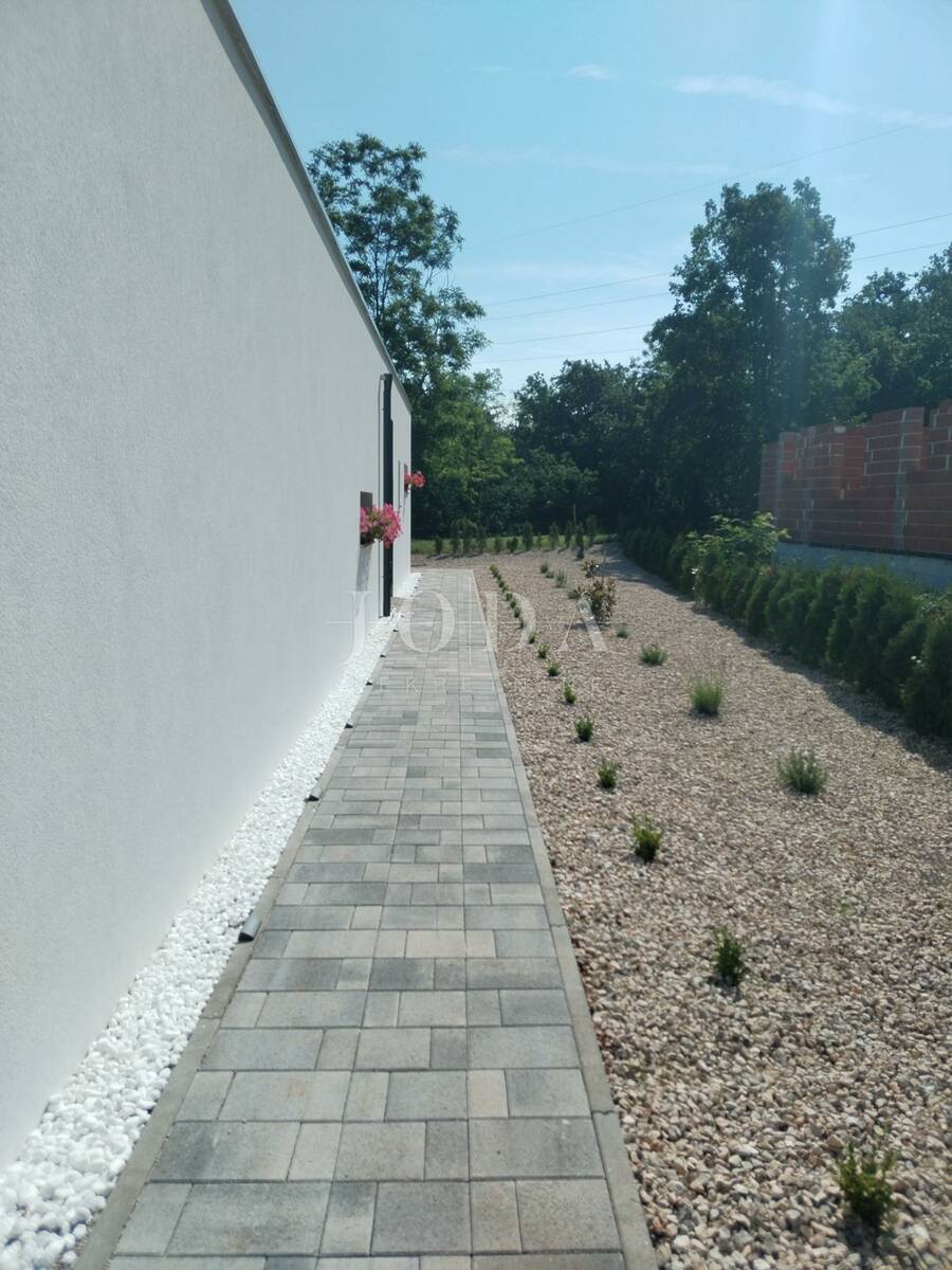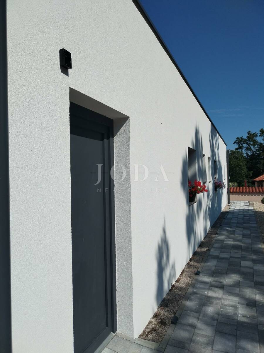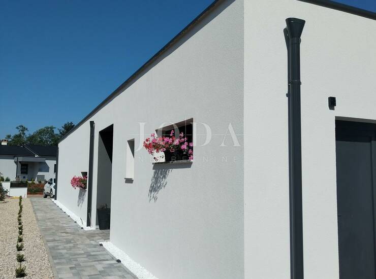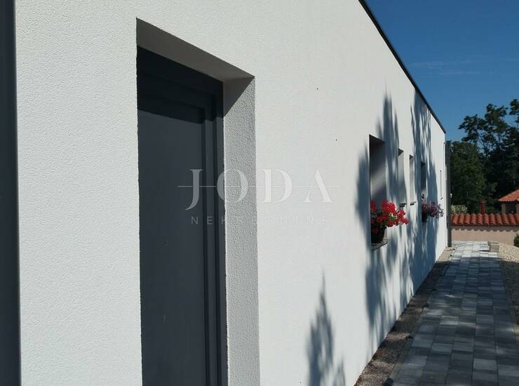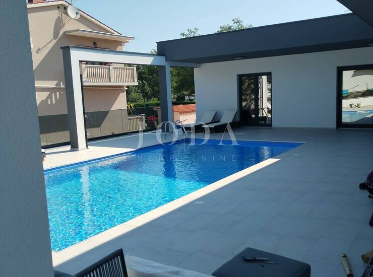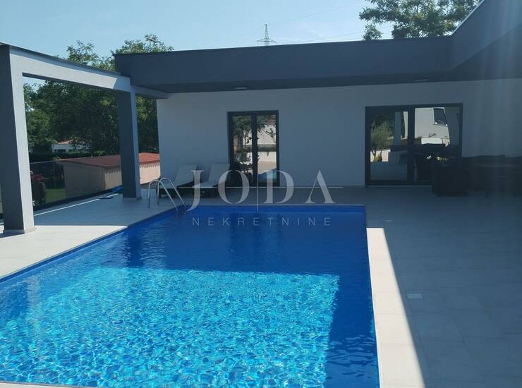 Na besprijekorno uređenoj okućnici nalazi se bazen sa sunčalištem, vanjska natkrivena terasa sa garniturama za sjedenje i uživanje u toplim ljetnim mjesecima.