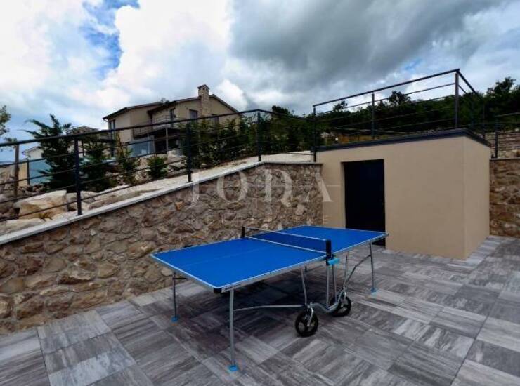 U sredini dvorišta nalazi se bazen sa sunčalištem, sa kojeg se kao i iz cijele Ville pruža prekrasan pogled na more.