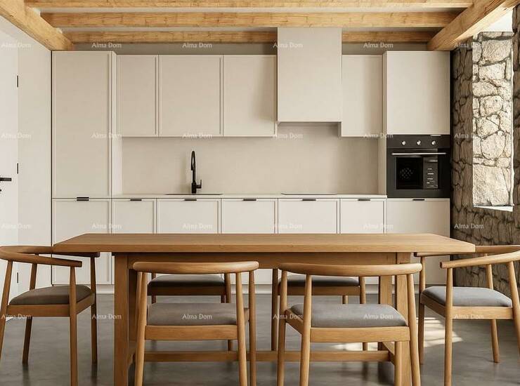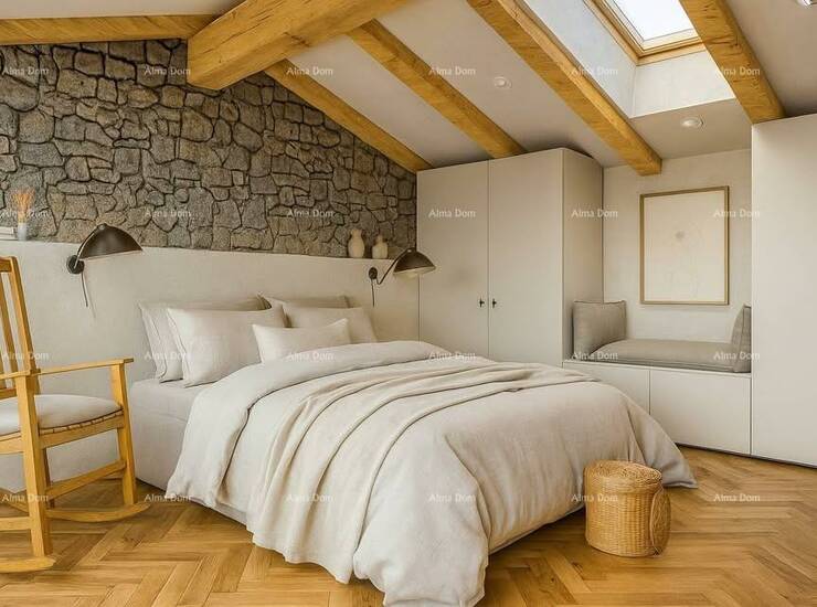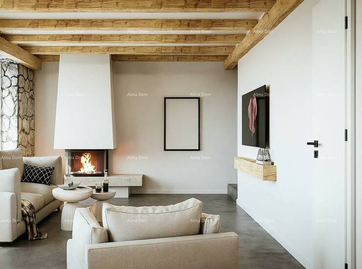 Interijer je uređen s pažnjom prema detaljima – podovi i kupaonice obloženi su mikrocementom, dok su u spavaćim sobama postavljeni drveni parketi.