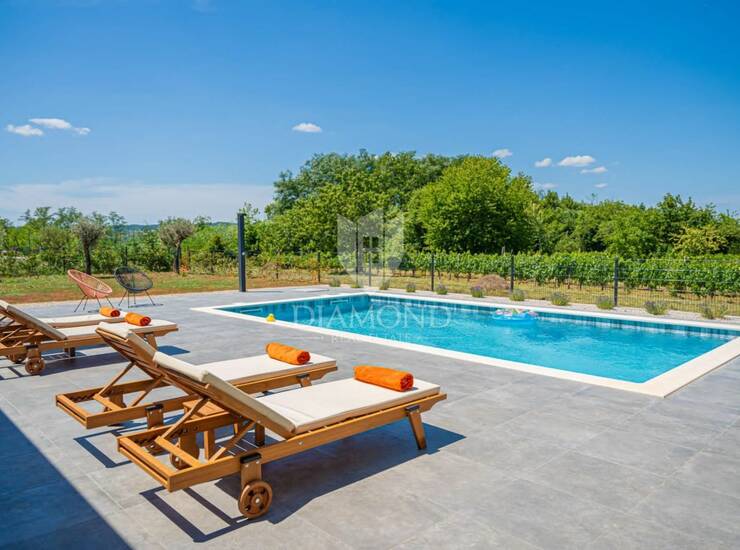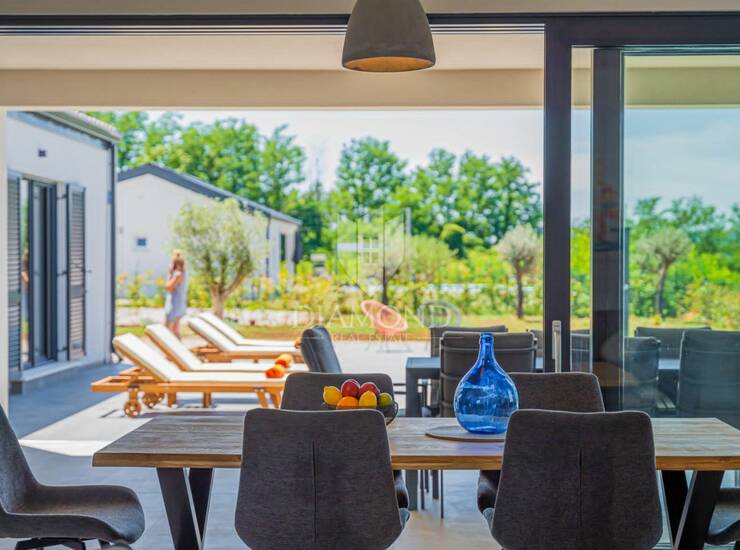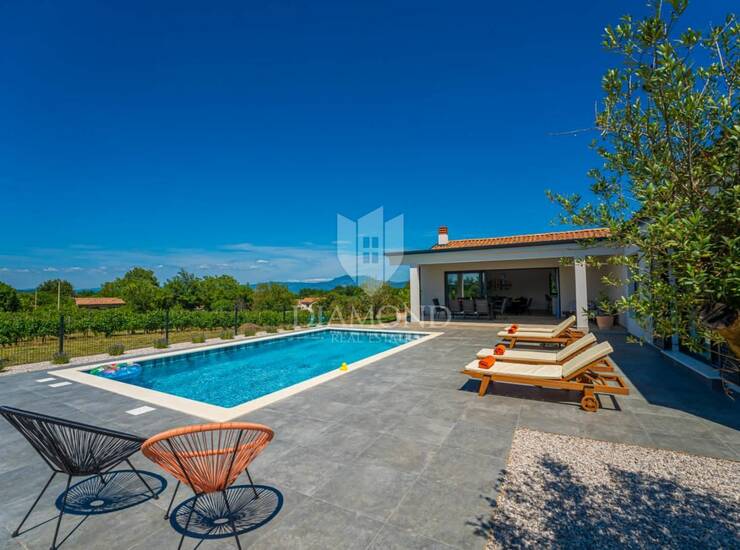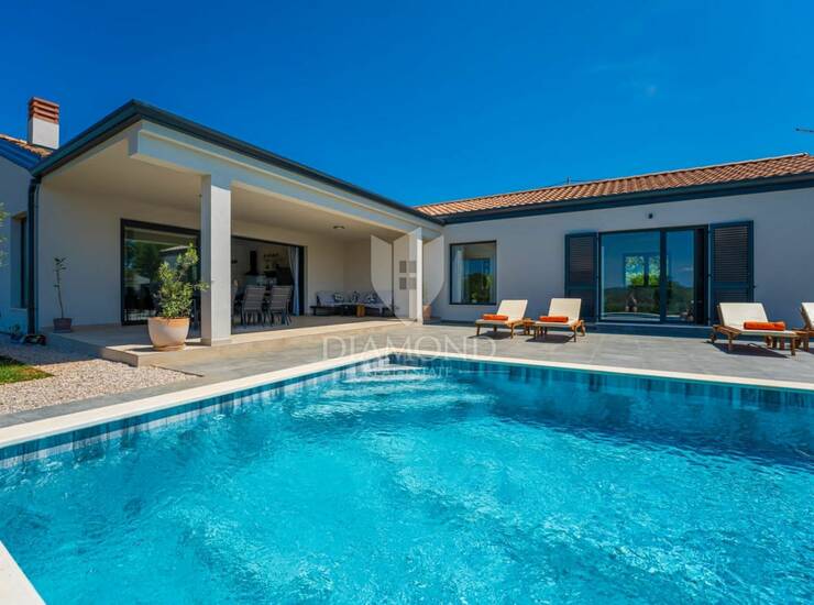 Na prodaju je moderna novogradnja s grijanim bazenom smještena na mirnoj i privatnoj lokaciji, svega 10 minuta vožnje od centra grada. Ova kvalitetna nekretnina prostire se na 150 m² stambene površine, dok ukupna površina okućnice iznosi 850 m².