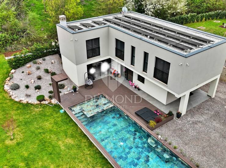 Nekretnina je opremljena vrhunskim sustavima poput podnog grijanja putem dizalice topline, solarne elektrane na krovu te smart home sustava koji omogućuje jednostavno upravljanje svim funkcijama doma. Dodatnu sigurnost pruža ugrađeni videonadzor.