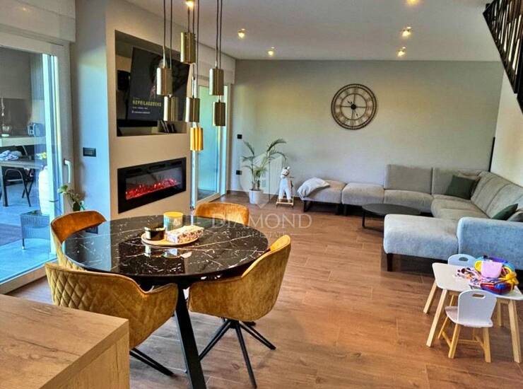 Na prodaju je moderna, potpuno namještena i odmah useljiva kuća smještena svega 5 km od Labina. Ova atraktivna nekretnina ukupne površine 180 m² pruža savršen spoj suvremenog dizajna, funkcionalnosti i energetske učinkovitosti.