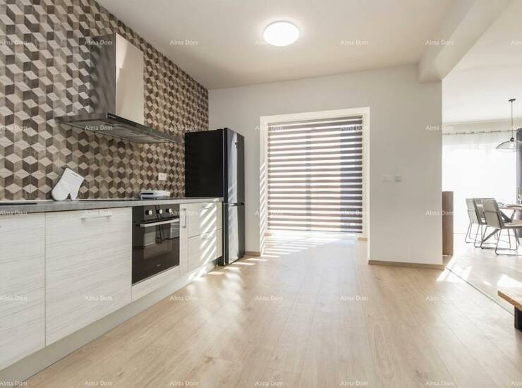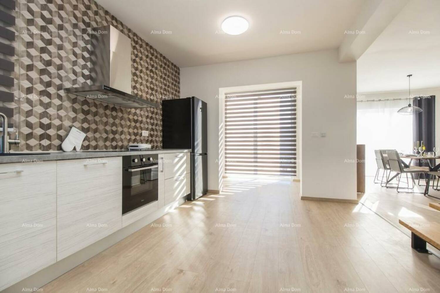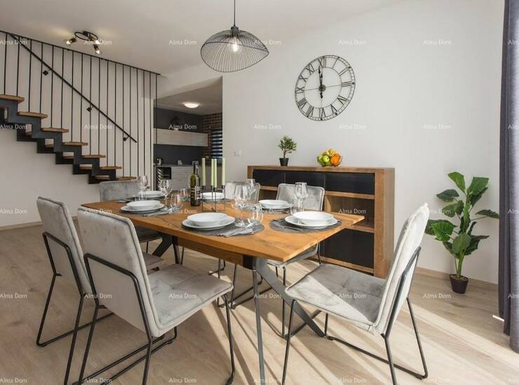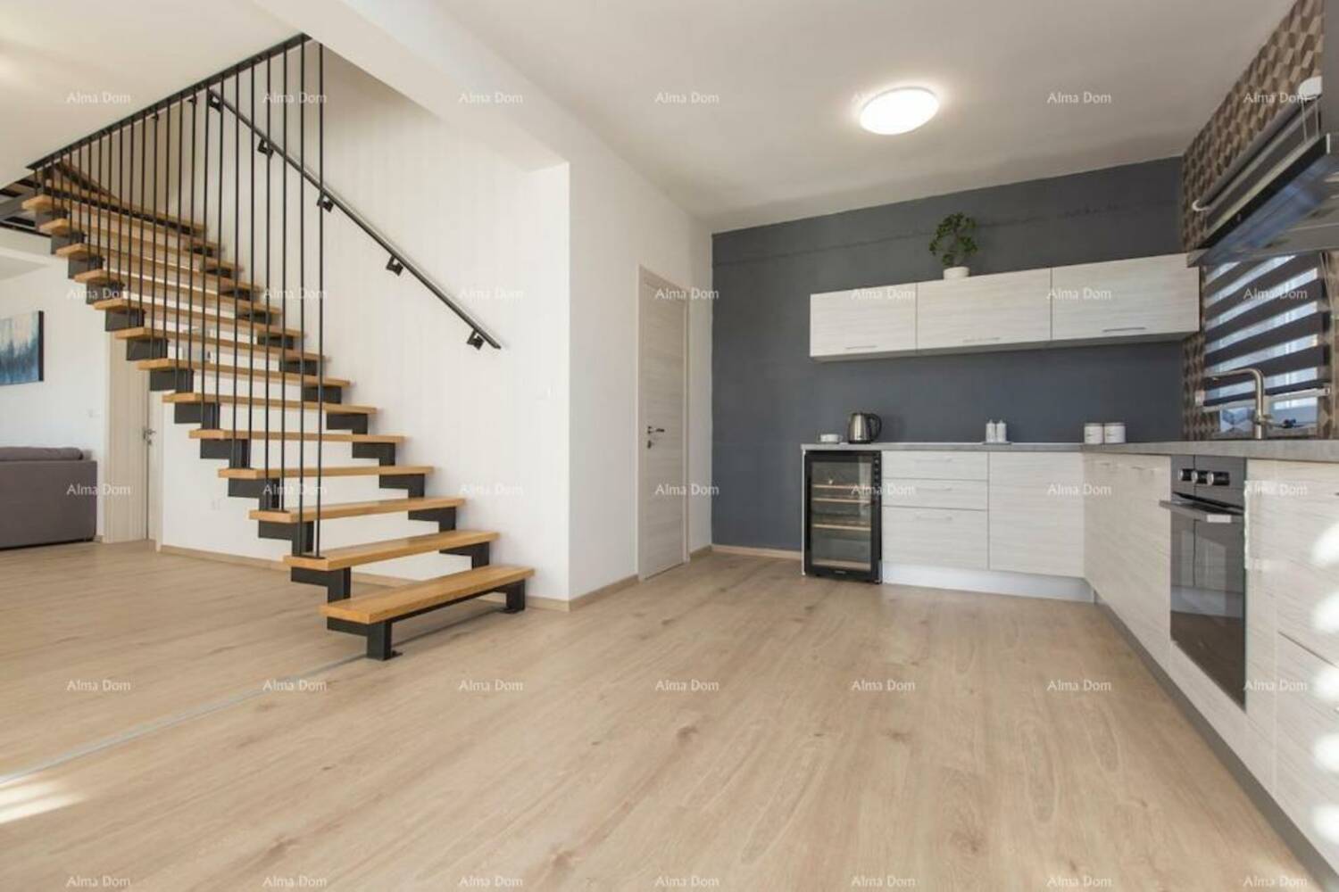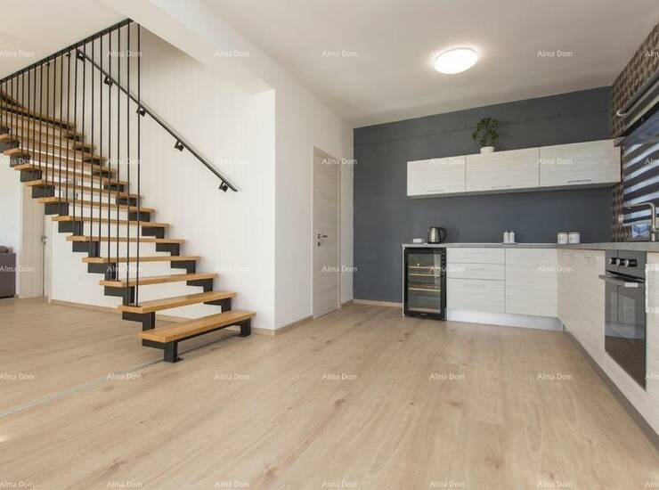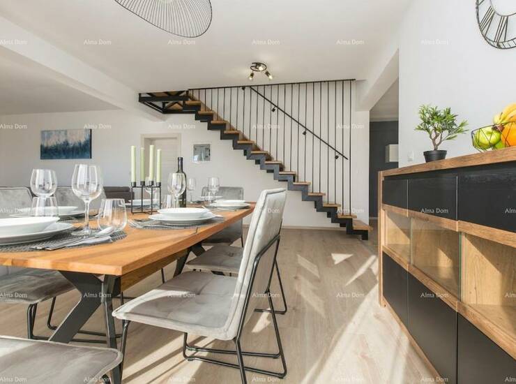 S površinom od 157 m², raspoređena na dva kata, sadrži tri spavaće sobe od kojih dvije imaju izlaz na balkone, prostrani dnevni boravak, kuhinju, blagavaonu i tri kupaonice.