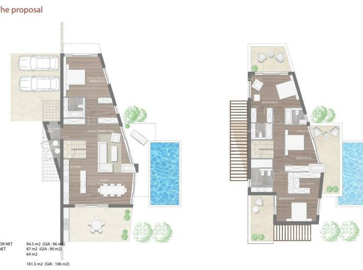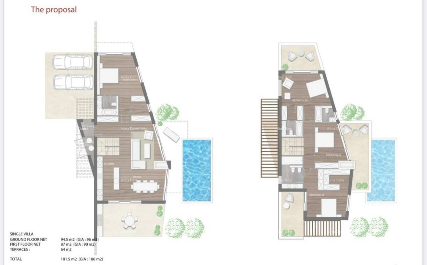 Vile Posjeduju 4 spavaće sobe (svaka soba ima izlay na balkon), 4 kupatila, dnevni boravak, terasu, 2 parkirna mjesta i bazen.