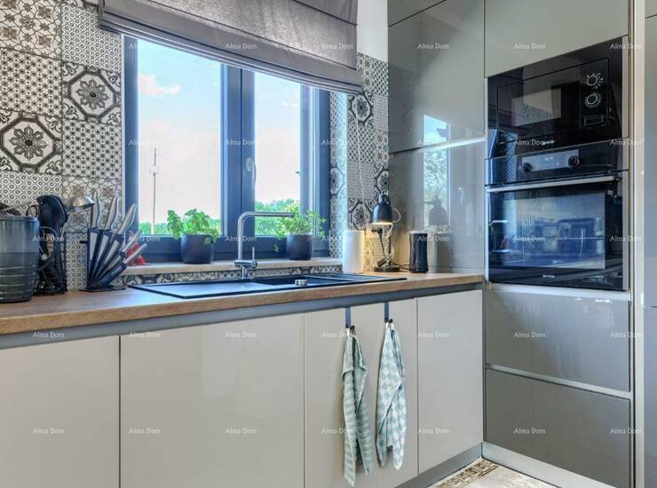 Vila se proteže na dvije etaže i osmišljena je tako da nudi obilje prostora i prirodnog svjetla. U prizemlju se nalazi prostrani dnevni boravak povezan s kuhinjom i blagovaonicom, stvarajući otvoreni i ugodan prostor za obiteljska okupljanja i druženja. Četiri udobne spavaće sobe raspoređene su tako da svatko ima svoj mir i privatnost. Na raspolaganju su dvije moderne kupaonice te dodatni WC, što osigurava praktičnost i komfor za veće obitelji ili goste.