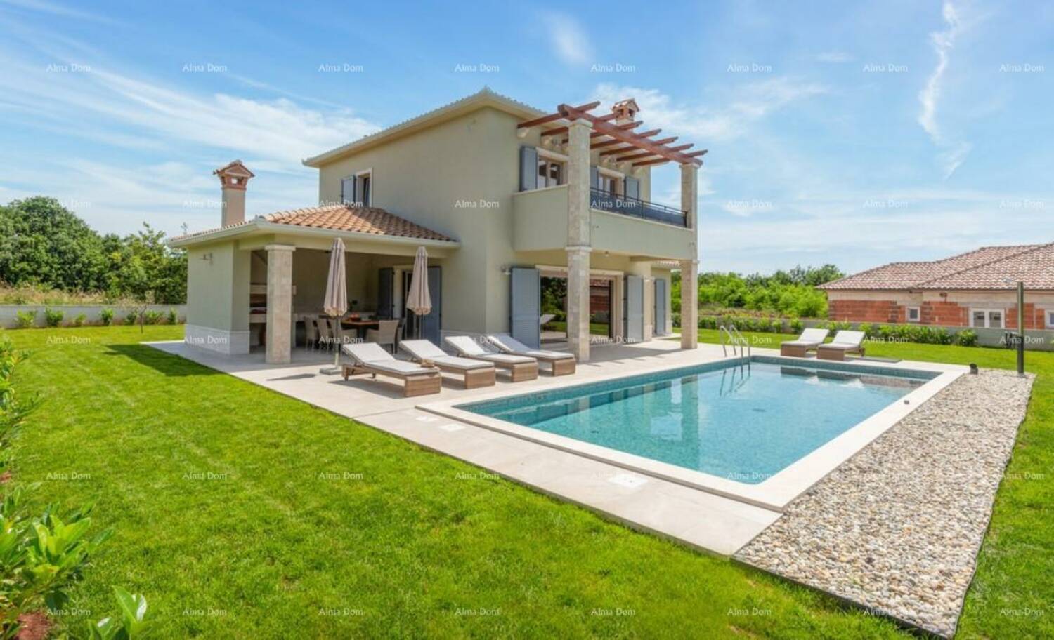 Prodaje se luksuzna vila u Labinu sa bazenom! Kuća ima 3 spavaćih soba i 2 kupaonica, 170 m2 stambene površine i zemljište od 1300 m2.