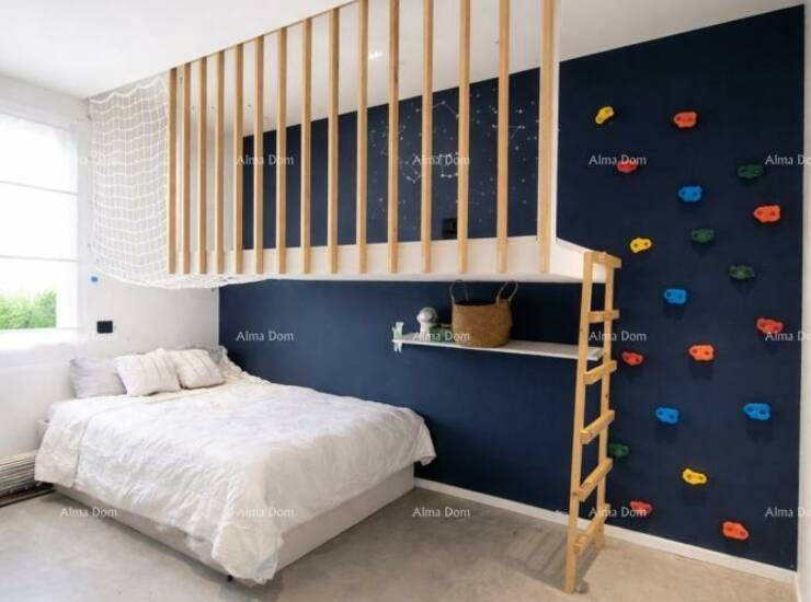 U ponudi je moderno izgrađena prizemna kuća stambene površine 143 m², smještena na izuzetno mirnoj lokaciji, a ipak nadomak starog grada Labina do kojeg se može stići i pješice.