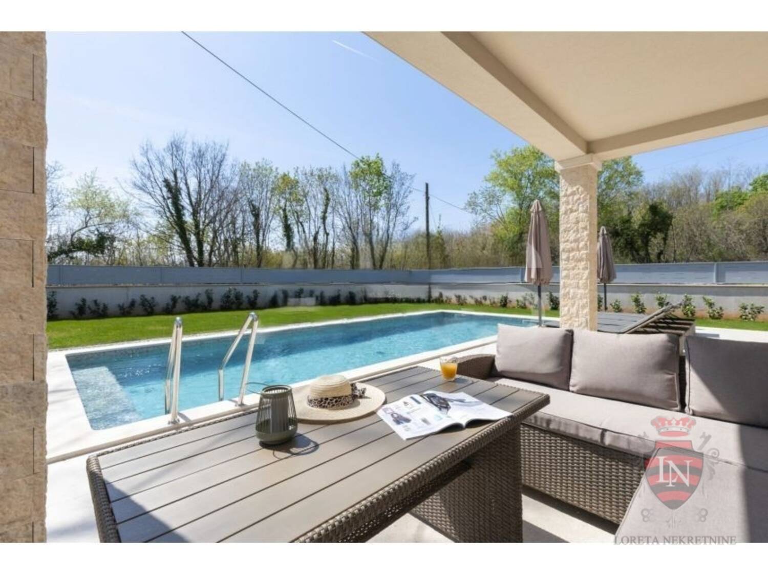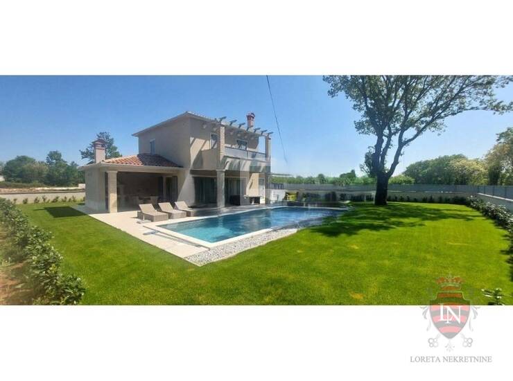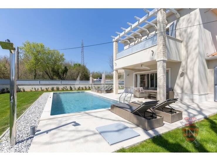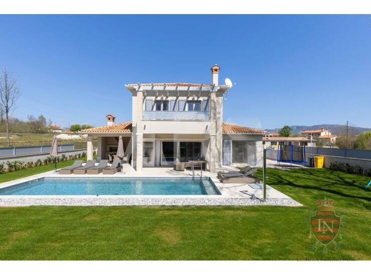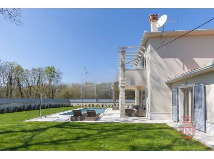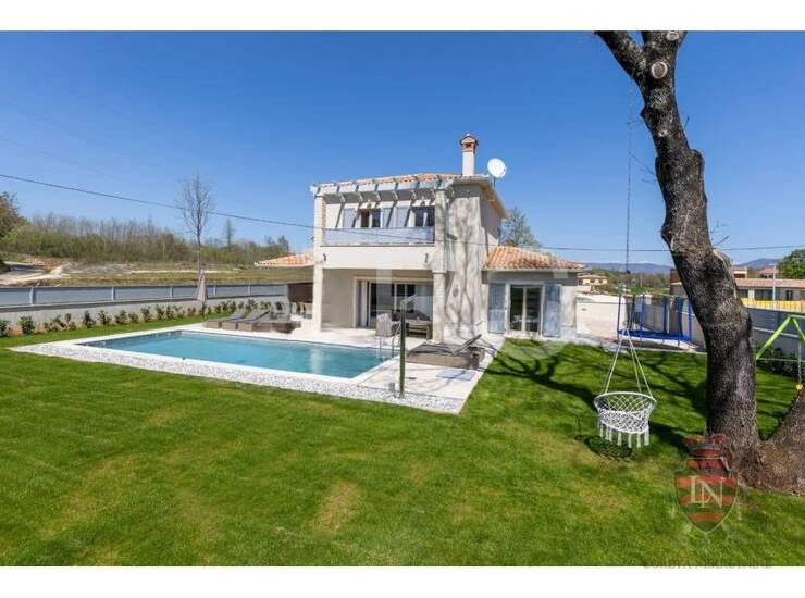 Na prodaju je elegantna kuća s bazenom, smještena u mirnom naselju nedaleko od grada, idealna za udoban život u lijepom okruženju.