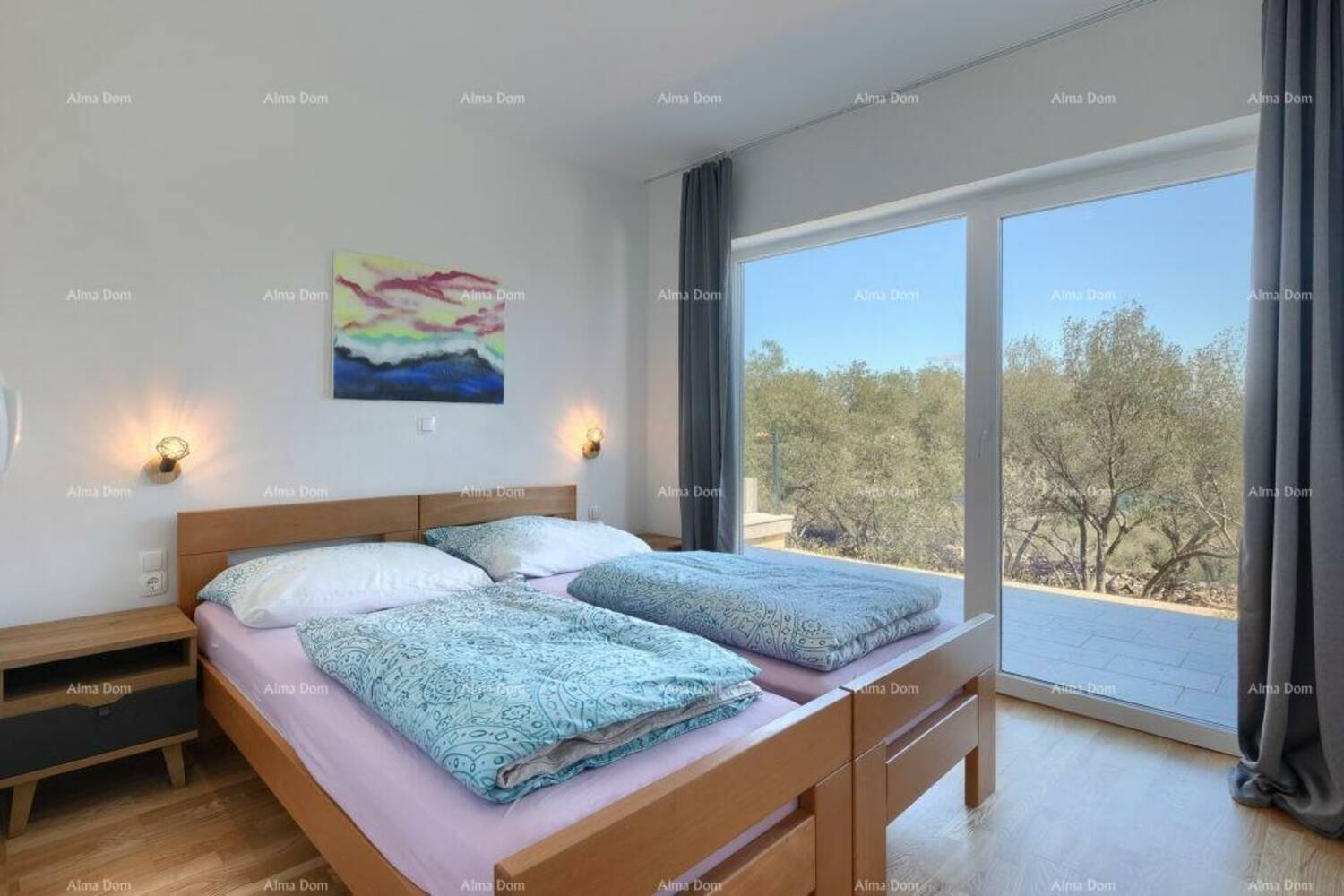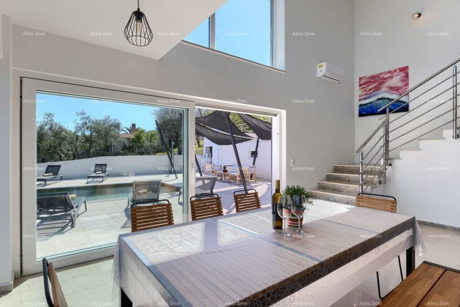 Naglasak na velikim staklenim površinama omogućuje obilje prirodnog svjetla te stvara osjećaj prostranosti i povezanosti s eksterijerom. Čist, moderan izgled i pažljivo birani detalji stvaraju izrazito ugodnu atmosferu.