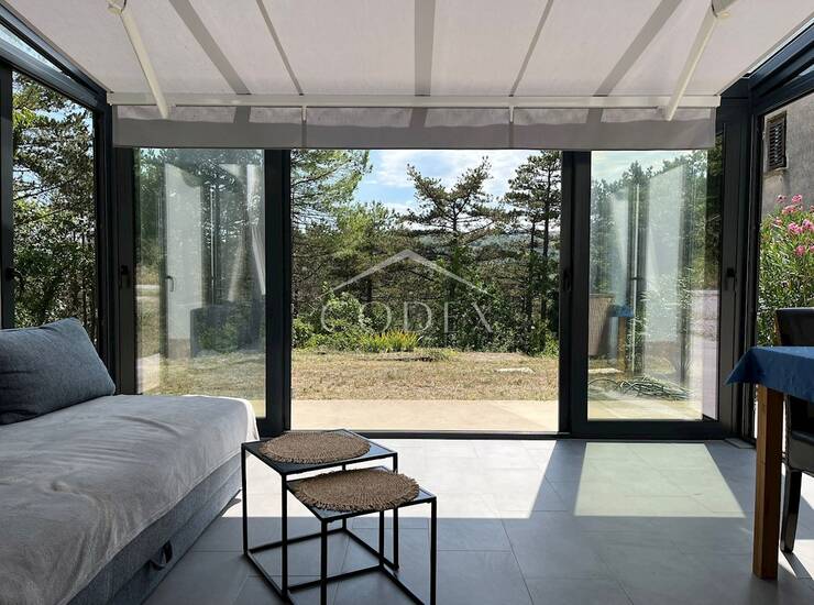 Nekretnina se prodaje potpuno namještena, što budućem vlasniku omogućuje brzo useljenje ili početak turističkog najma bez dodatnih ulaganja. Posebnu vrijednost daje stakleni zimski vrt koji pruža ugodan prostor za opuštanje i uživanje u pogledu na prirodu tijekom svih godišnjih doba.