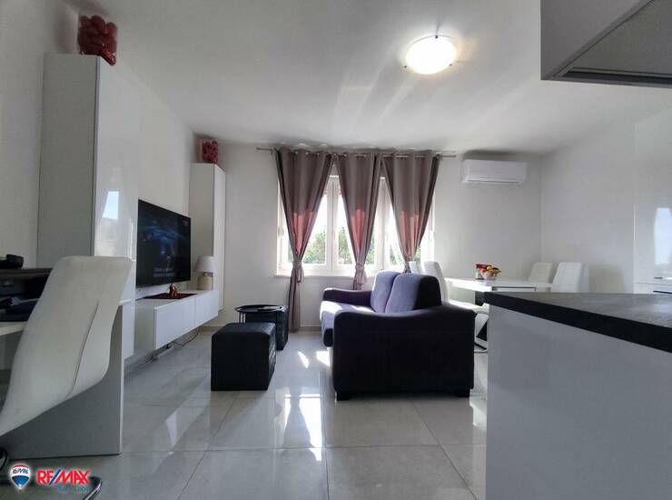Potpuno je renoviran – podovi, zidovi i instalacije – te je klimatiziran u dnevnom i spavaćem dijelu. Uređen je kvalitetnim namještajem i opremom.