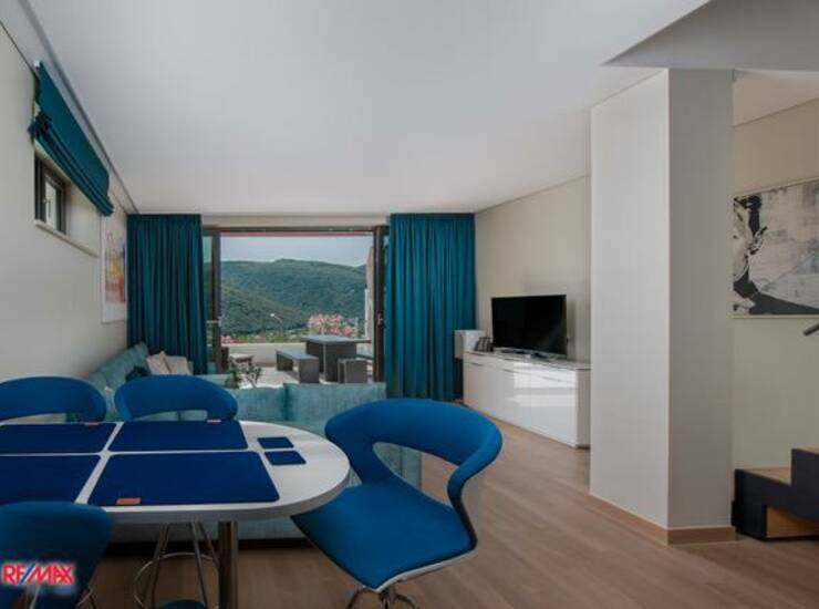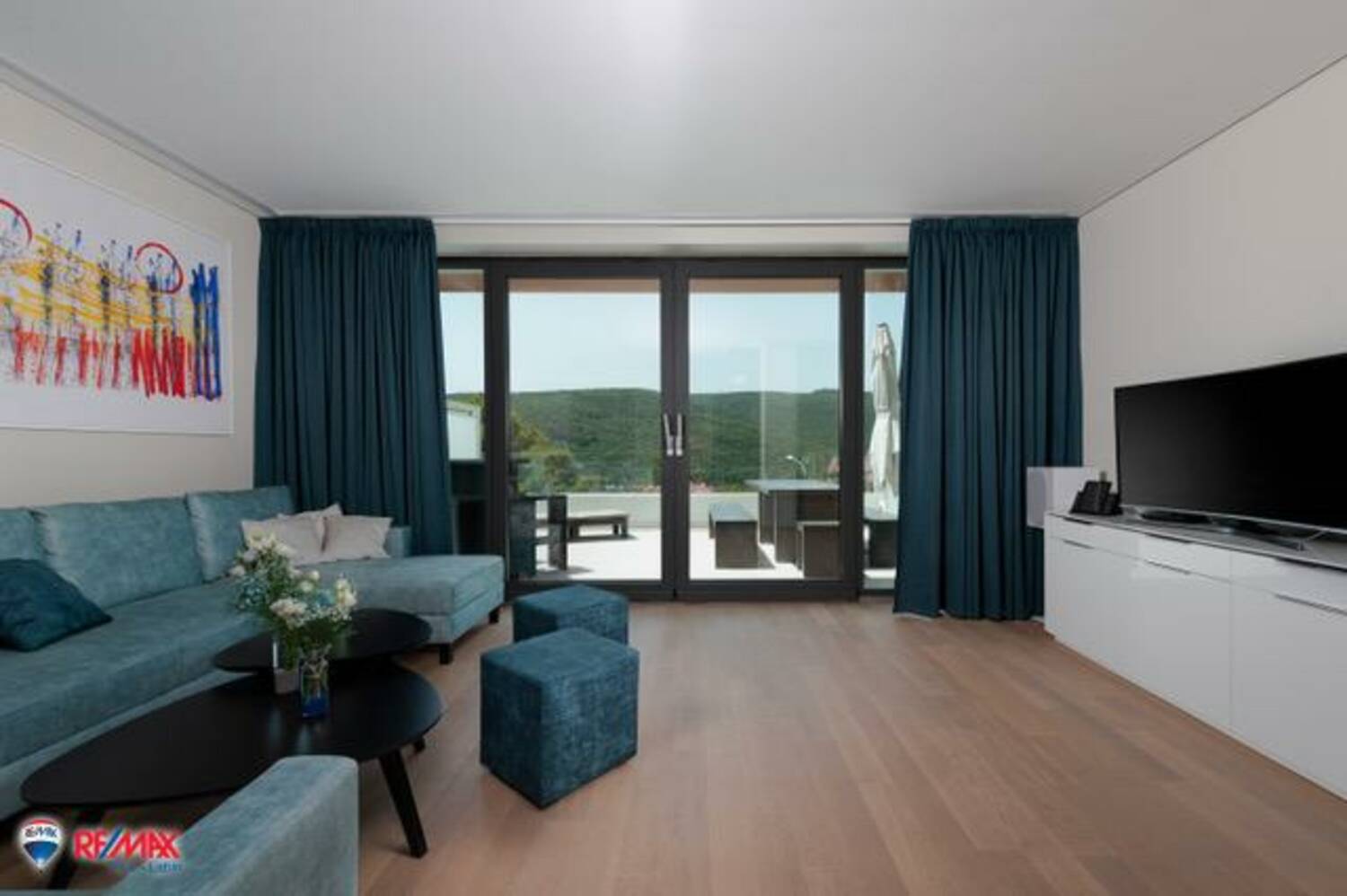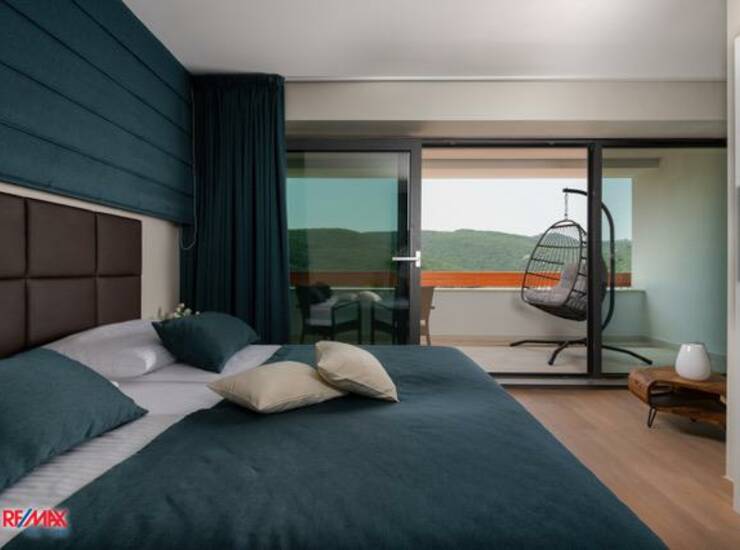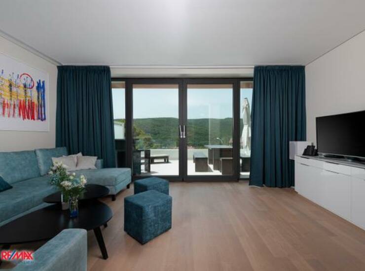 Stan ima veliku terasu i dva balkona – terasa i jedan od balkona pružaju otvoren pogled na more. Drugi balkon je zatvoren staklenim kliznim stijenkama i prenamijenjen u dodatni grijani prostor koji može služiti kao druga spavaća soba, radna soba ili prostor za opuštanje.