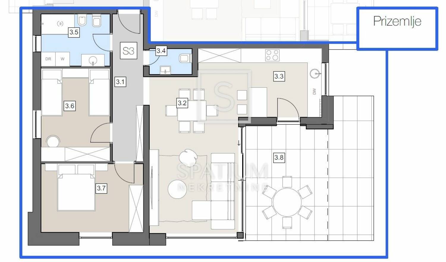 LABIN, u ponudu smo dobili moderan i prostran stan površine 85,50 m² smješten u prizemlju urbane vile vrhunske kvalitete, koja se sastoji od ukupno tri etaže. Stan je pomno osmišljen kako bi pružio maksimalnu udobnost i funkcionalnost te se sastoji od dvije spavaće sobe, kupaonice, dodatnog WC-a, hodnika te prostora otvorenog koncepta koji povezuje kuhinju, blagovaonicu i dnevni boravak s izlazom na natkrivenu terasu. Zahvaljujući velikim staklenim stijenama, prostor obiluje prirodnim svjetlom, stvarajući ugodnu atmosferu tijekom cijelog dana. Korišteni su trajni i kvalitetni materijali, a projekt je osmišljen tako da zadovolji visoke standarde modernog stanovanja. Planirani izgradnja je u lipnju 2027., dok je primopredaja predviđena za prosinac 2027.