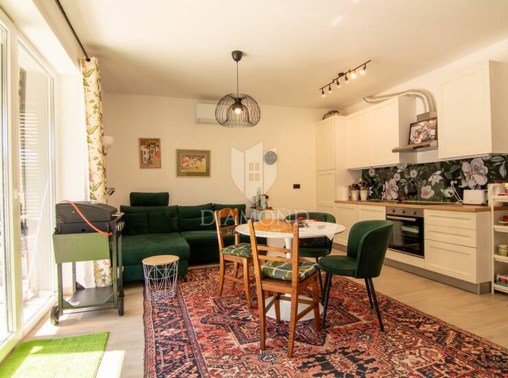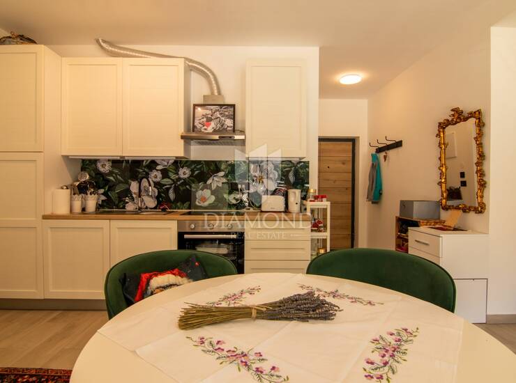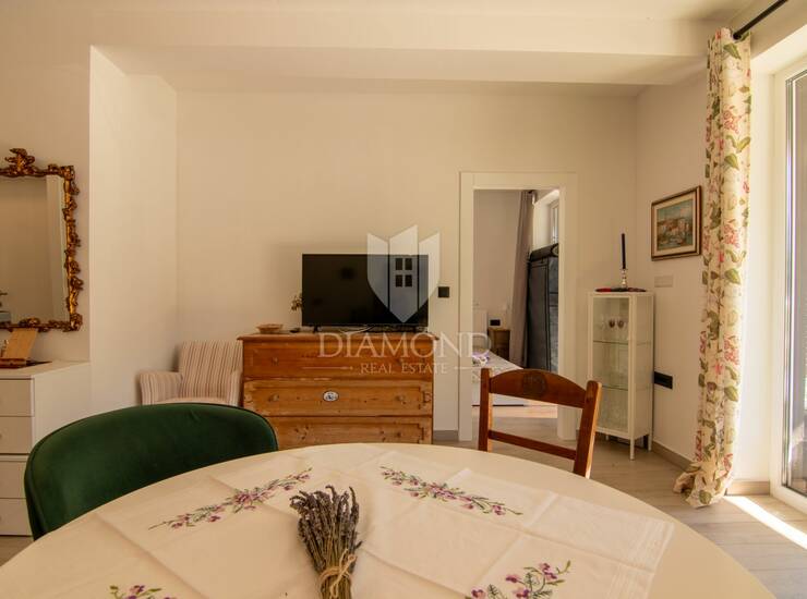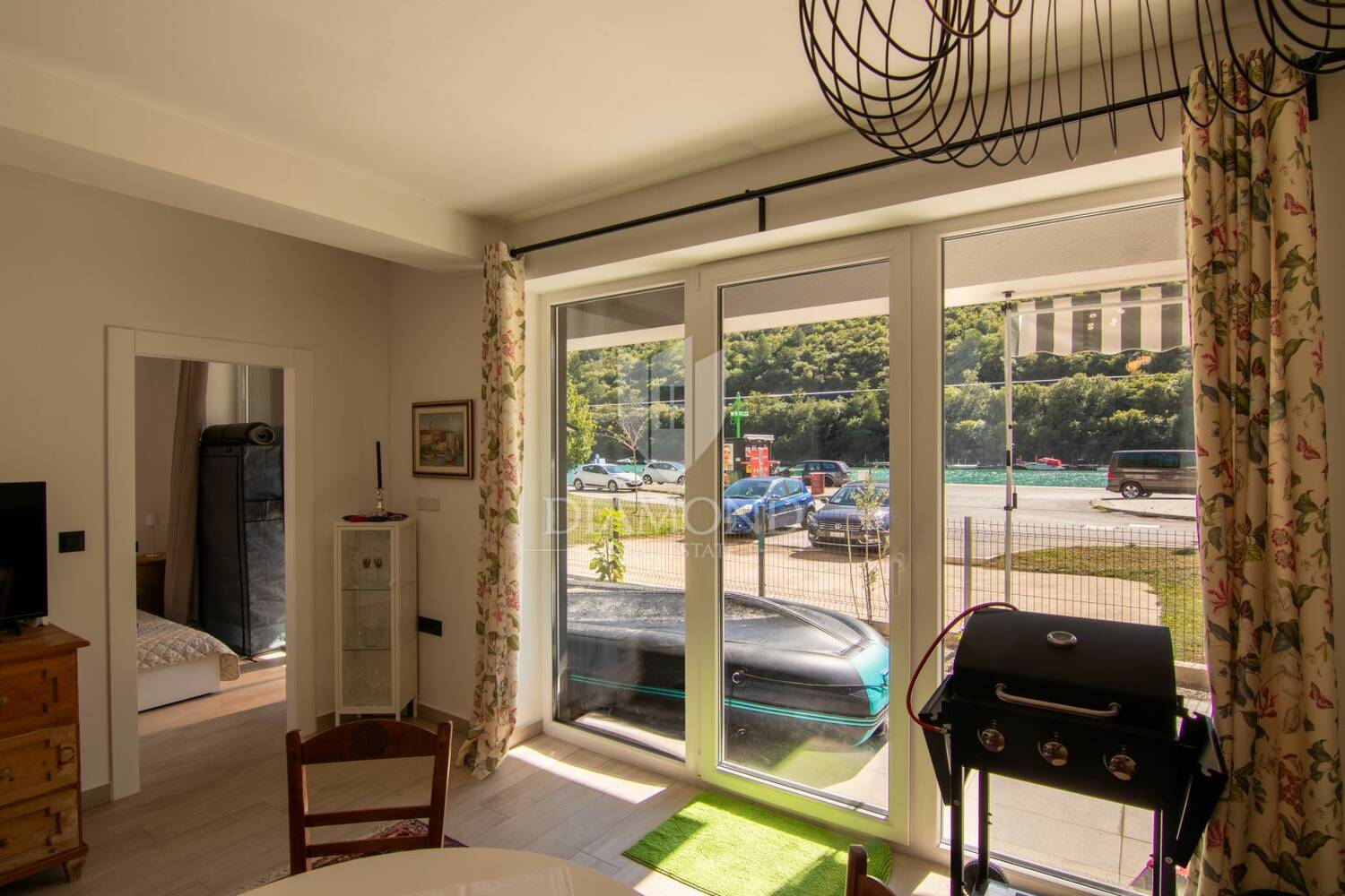 U okolici slikovitog Labina, u prvom redu do mora, smjestio se jednosoban stan koji odiše toplinom i mediteranskim šarmom. Položen u prizemlju, ovaj stan pruža osjećaj potpune povezanosti s prirodom – iz dnevnog prostora izlazi se na prostranu terasu koja postaje središnje mjesto za uživanje u dugim ljetnim večerima, mirnim jutarnjim kavama i trenucima opuštanja dok se more nazire na svega nekoliko koraka. Vlastiti vrt daje dodatnu dozu intime i stvara atmosferu malog, zelenog utočišta u kojemu se lako zaboravlja svakodnevna užurbanost. Blizina mora pruža poseban ugođaj – šum valova i miris soli prisutni su u svakom dahu, pretvarajući ovaj dom u mjesto gdje se svaki dan doživljava kao odmor. Stan se prodaje potpuno opremljen i namješten, spreman da odmah postane utočište za one koji sanjaju o životu uz obalu ili o vikendima ispunjenima sunčevim zrakama i bezbrižnim uživanjem. Njegov ambijent, spoj funkcionalnosti i topline, savršeno odražava duh Mediterana, dok sama lokacija pruža rijetku priliku da se osjeti prava čarolija življenja tik uz more.